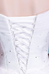 Ball Gown Wedding Dresses Princess Ivory Off The Shoulder Beaded Long Bridal Dress