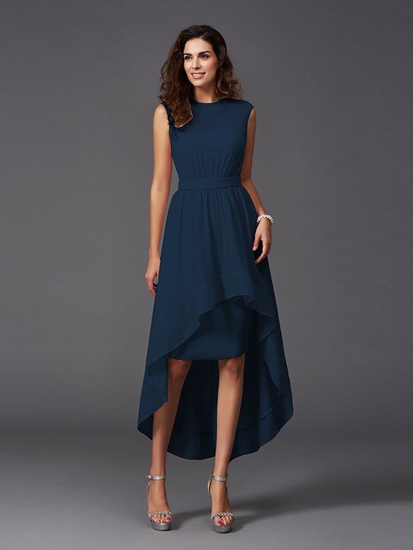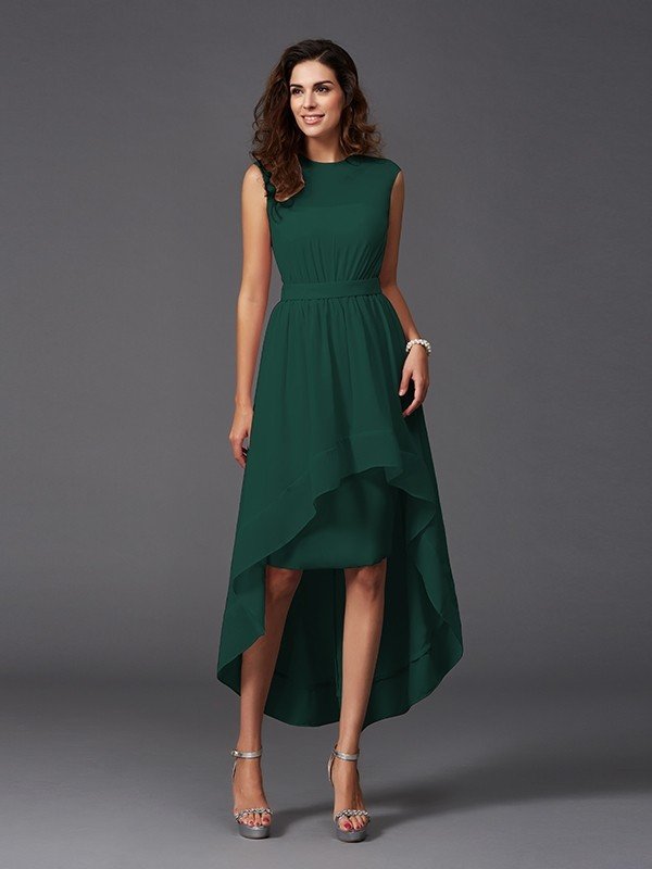 Classy Sash/Ribbon/Belt Sleeveless High Low Chiffon Bridesmaid Dresses