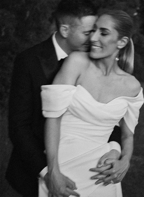 Off-The-Shoulder Sleeveless Sweep Train Elastic Satin Wedding Dresses Front Split