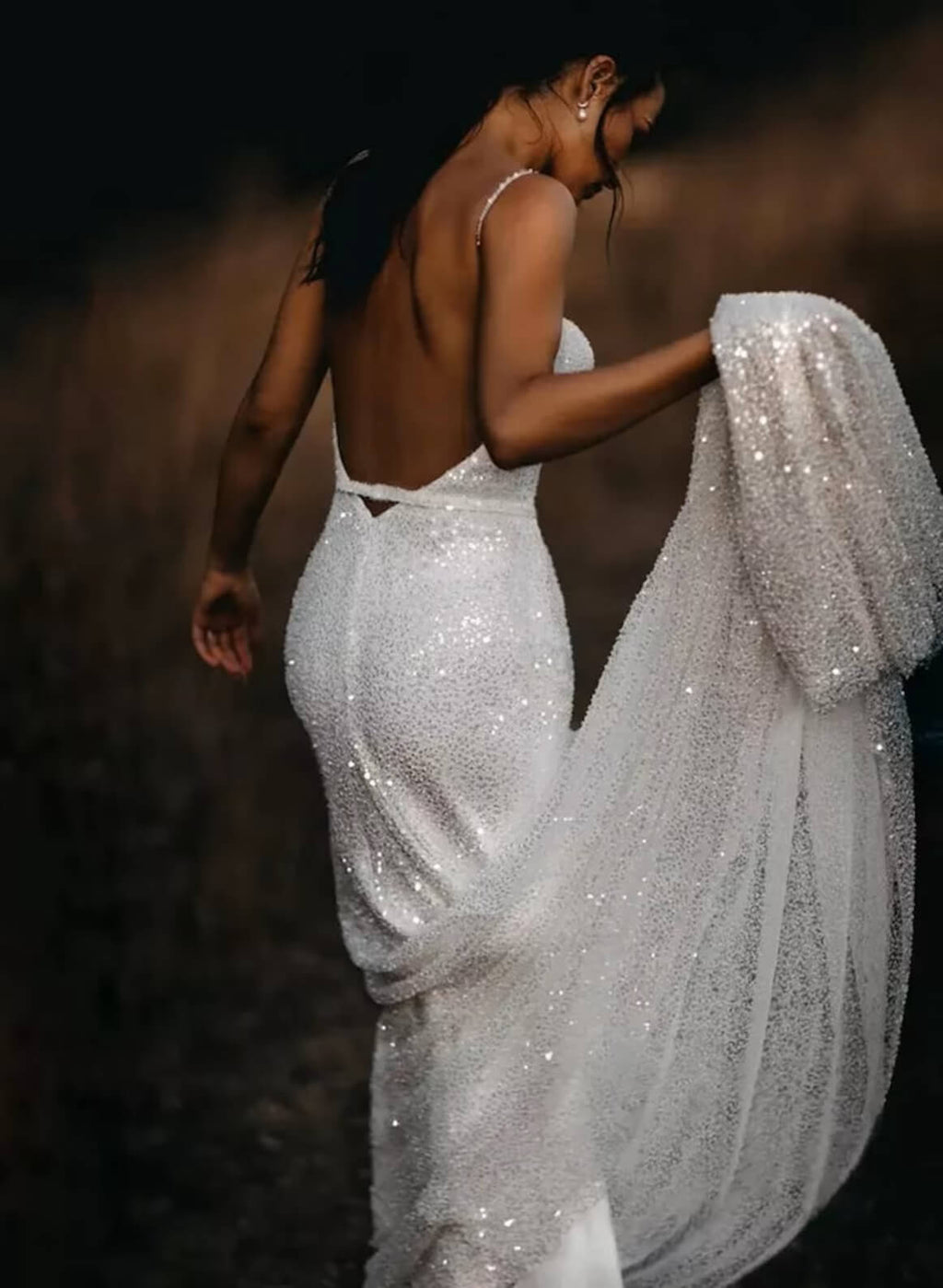 Sparkly Backless Mermaid Fitted Wedding Dresses