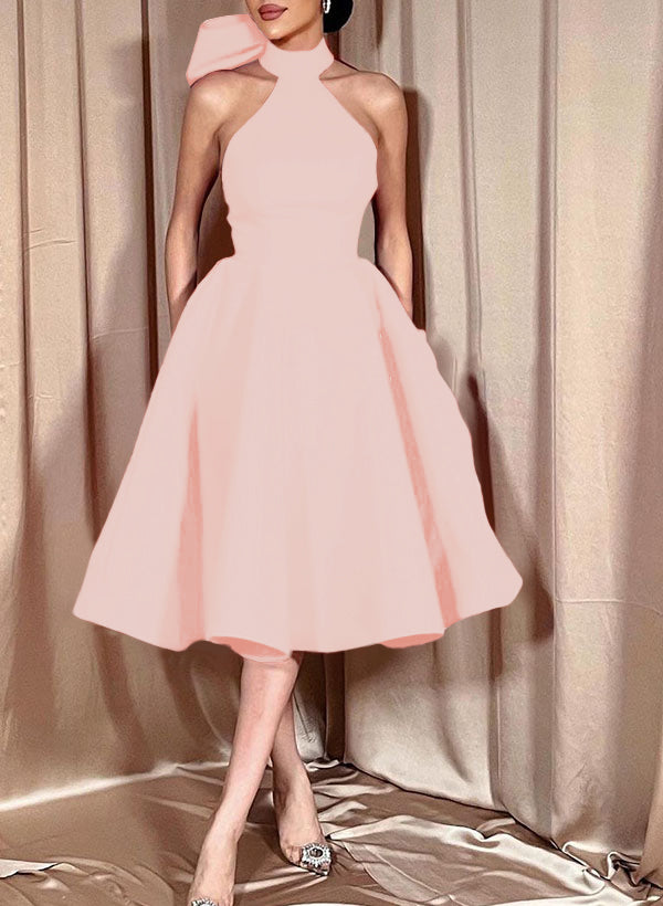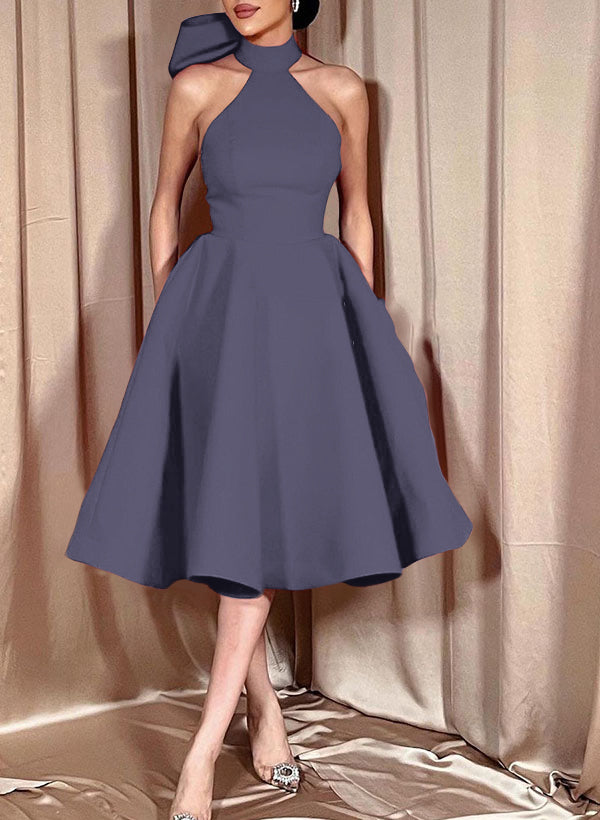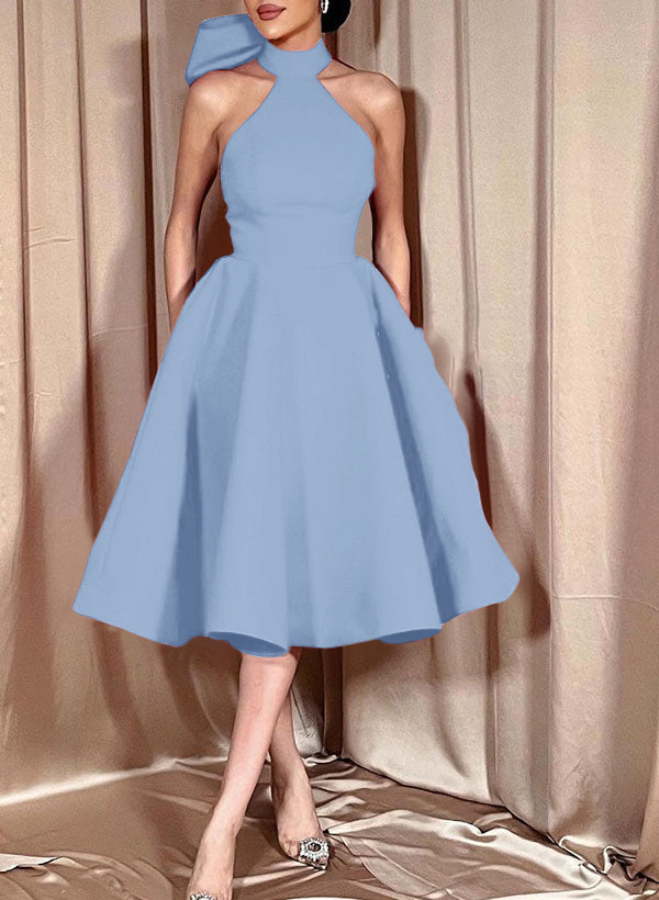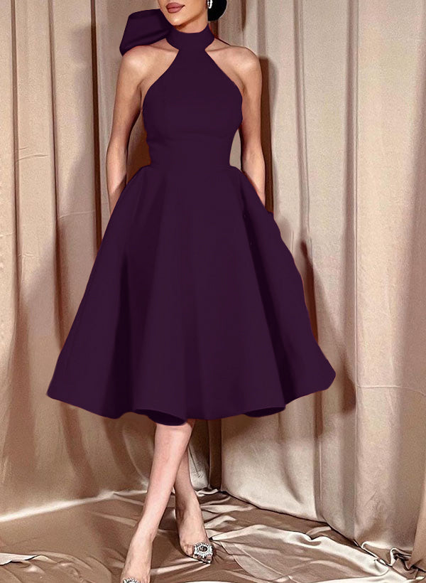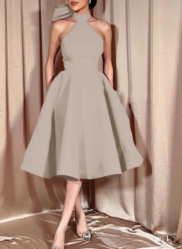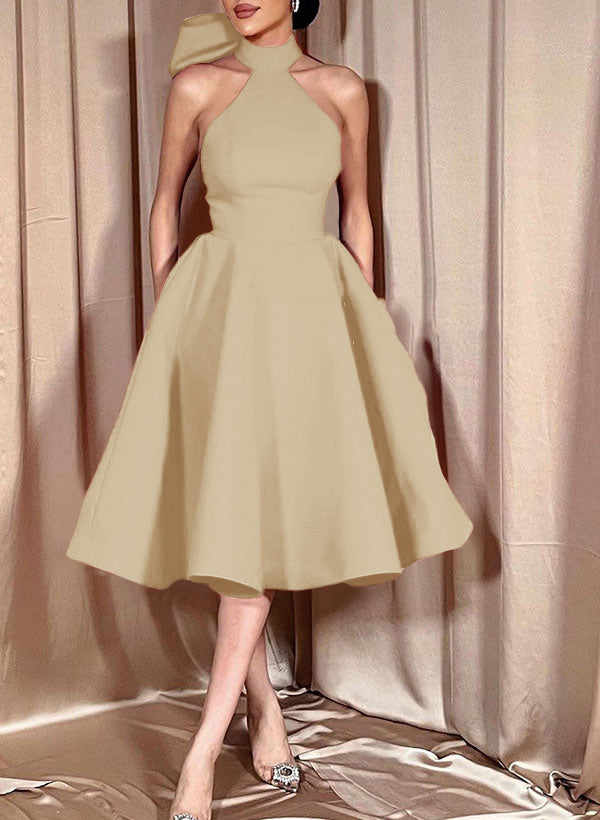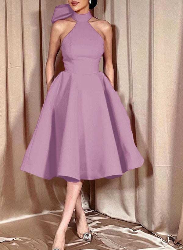 Ball-Gown Halter Sleeveless Satin(Non-Stretch) Homecoming Dresses With Bow(s)