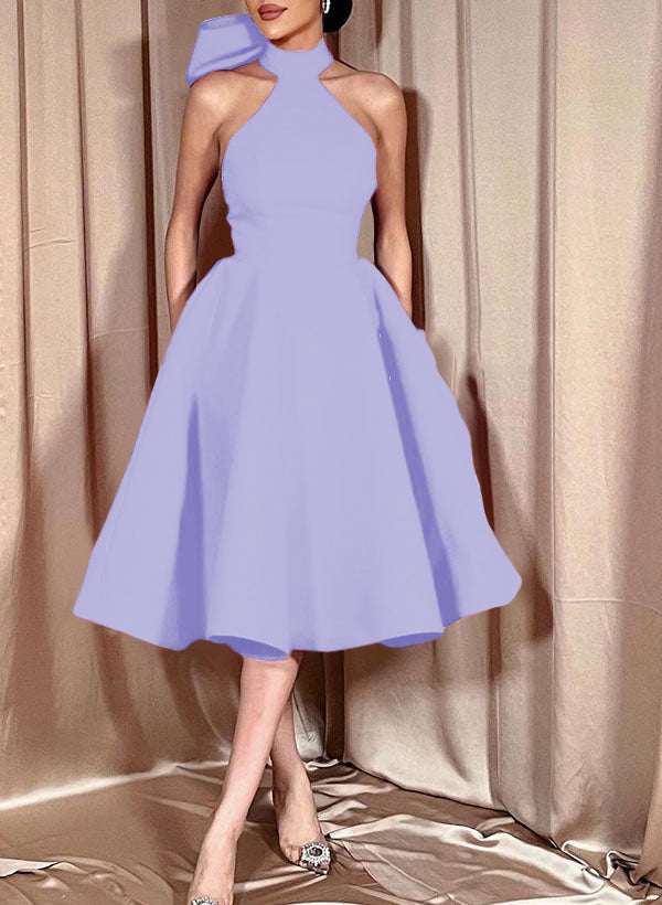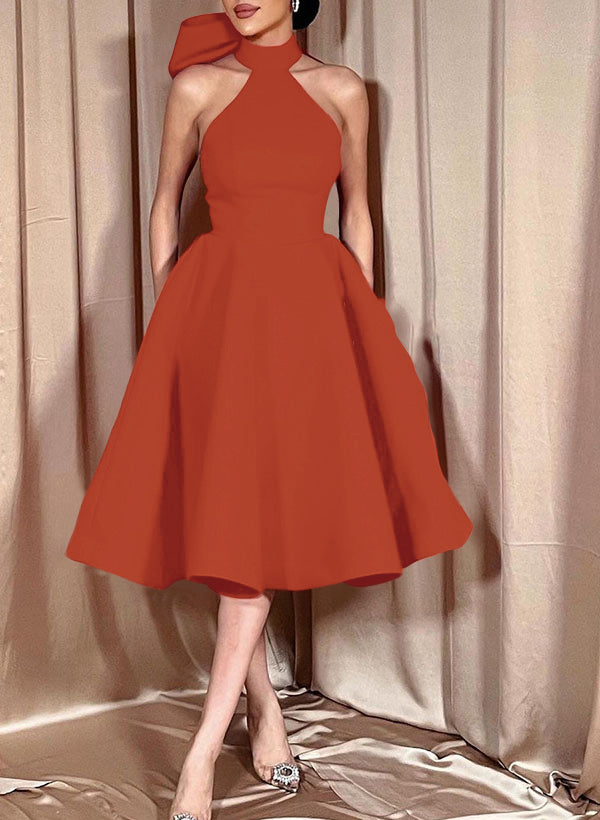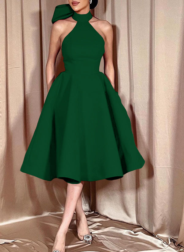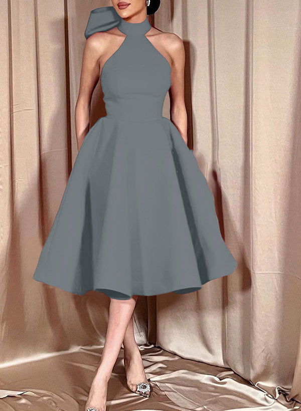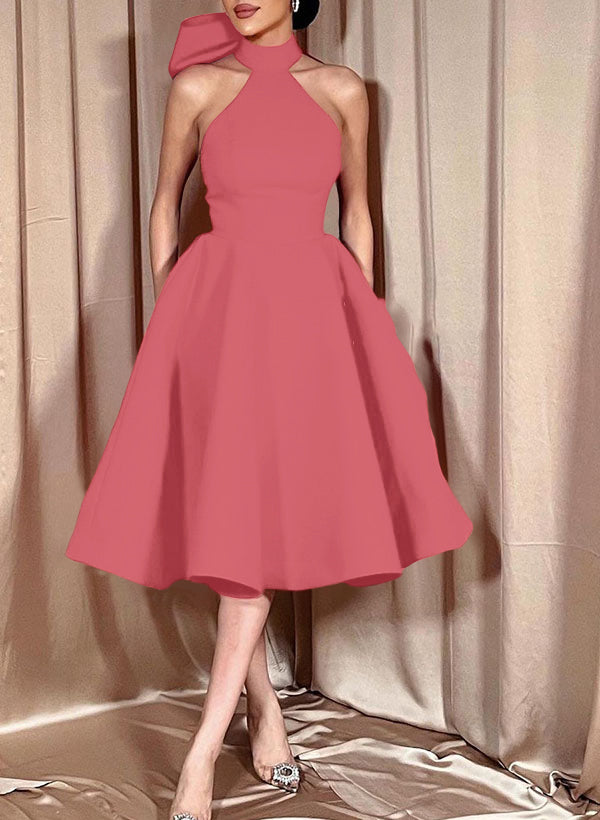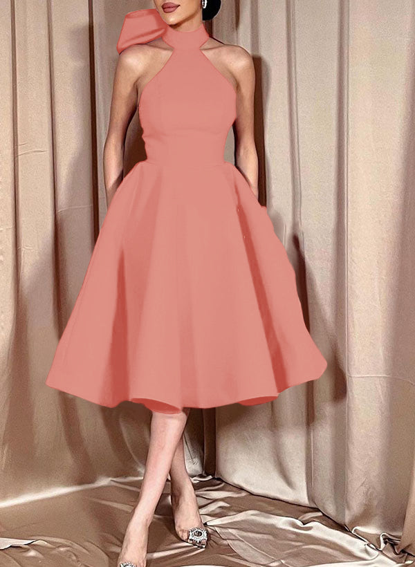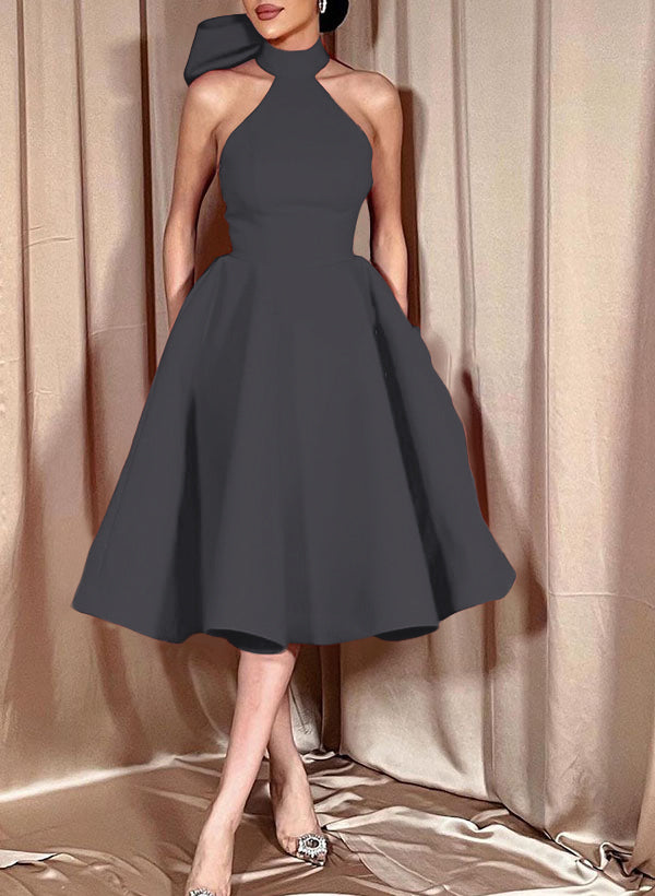 Ball-Gown Halter Sleeveless Satin(Non-Stretch) Homecoming Dresses With Bow(s)