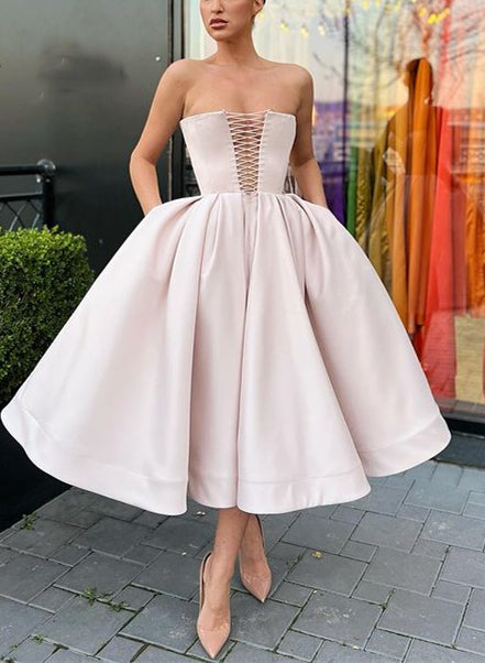 Sexy Strapless A-Line Satin Homecoming Dresses