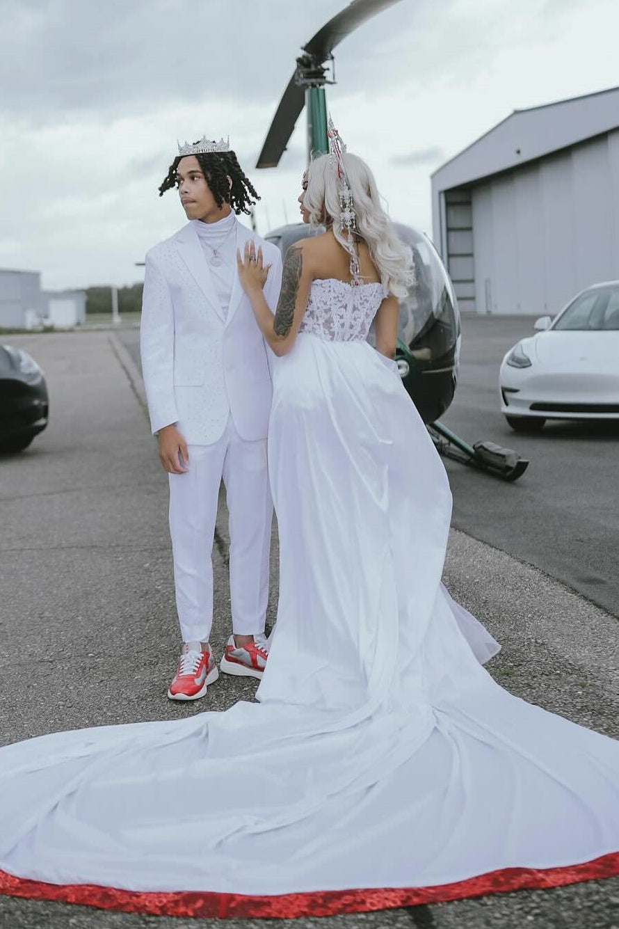 Achieve the perfect balance of elegance and allure in our Elegant White Sweetheart Tulle Appliques Sheath Prom Dress. This stunning gown features delicate appliques and a sweetheart neckline, crafted from luxurious tulle fabric. The sheath silhouette and sleeveless design exude a sexy and lively vibe, while the sweep train hemline adds a touch of drama. Make a statement at prom or any special occasion with this special designed dress.