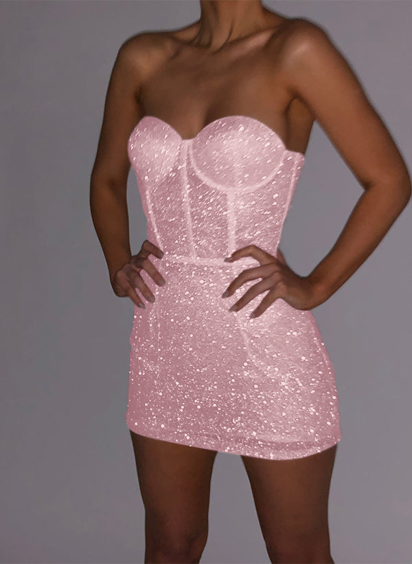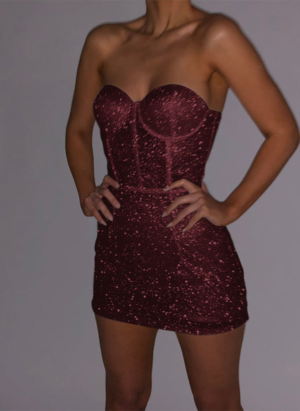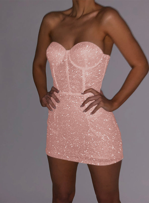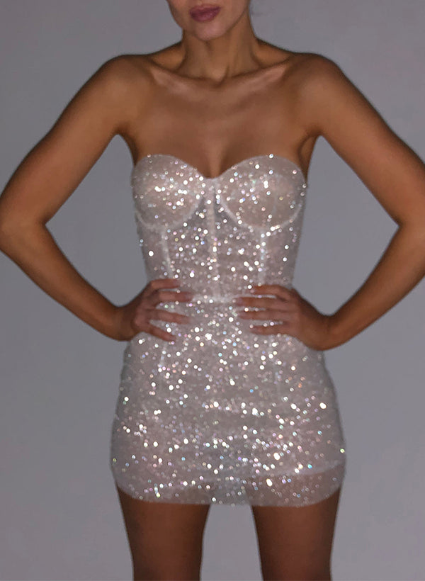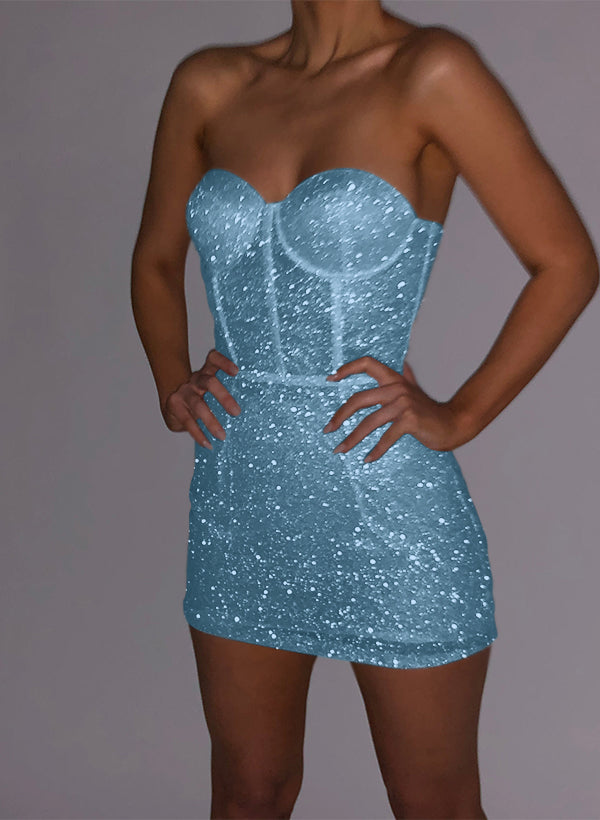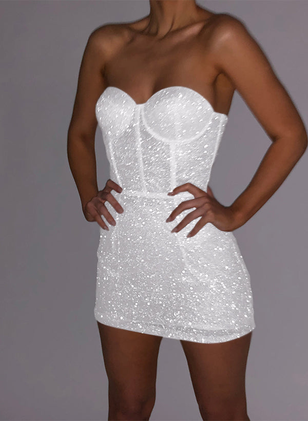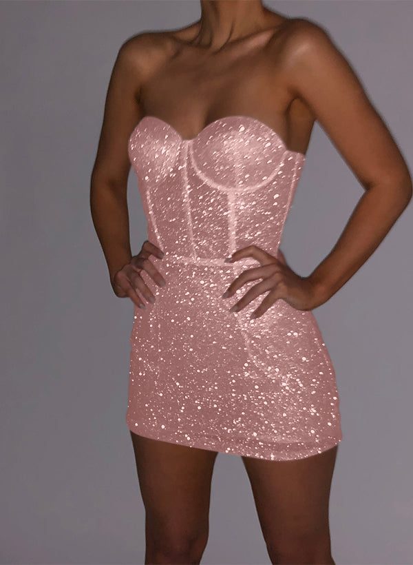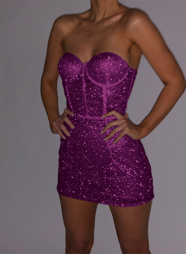 Sheath/Column Sweetheart Sleeveless Short/Mini Sequined Homecoming Dresses