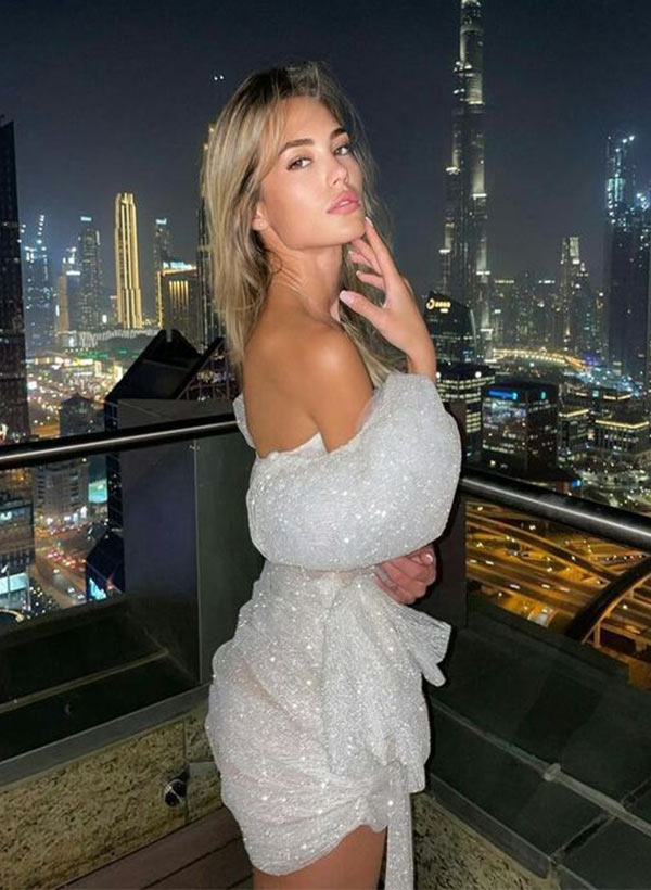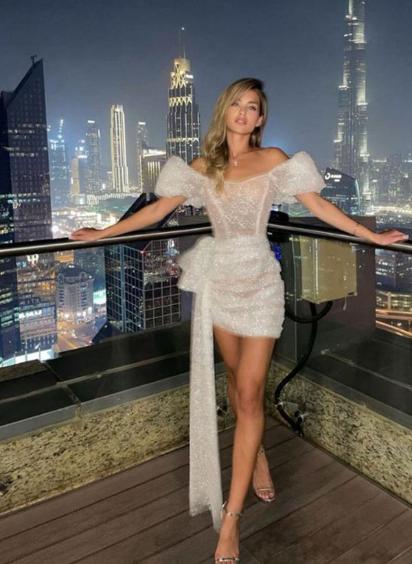 Sheath Short Sleeves Short/Mini Sequined Homecoming Dresses