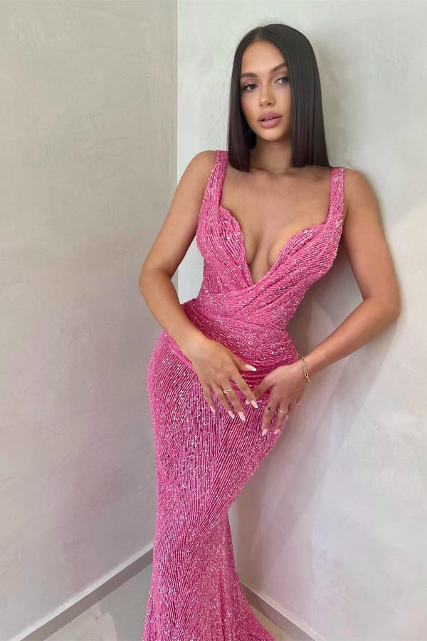 Chic Spaghetti-Straps Sequins Sleeveless Mermaid Formal Dresses
