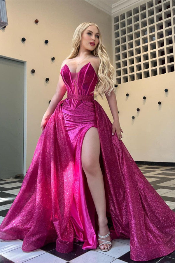Dazzling Purple Strapless Sweetheart Sequins A-Line Evening Dresses Detachable Sleeves With High Split