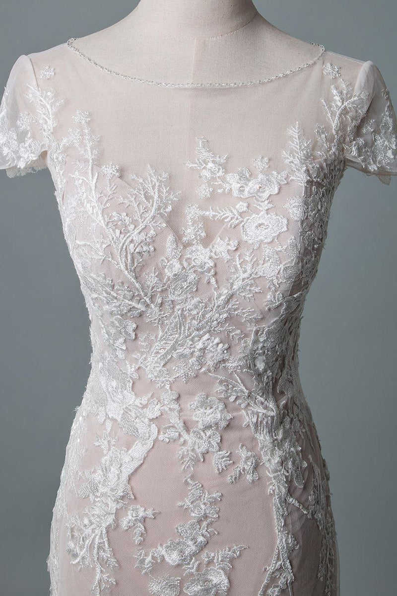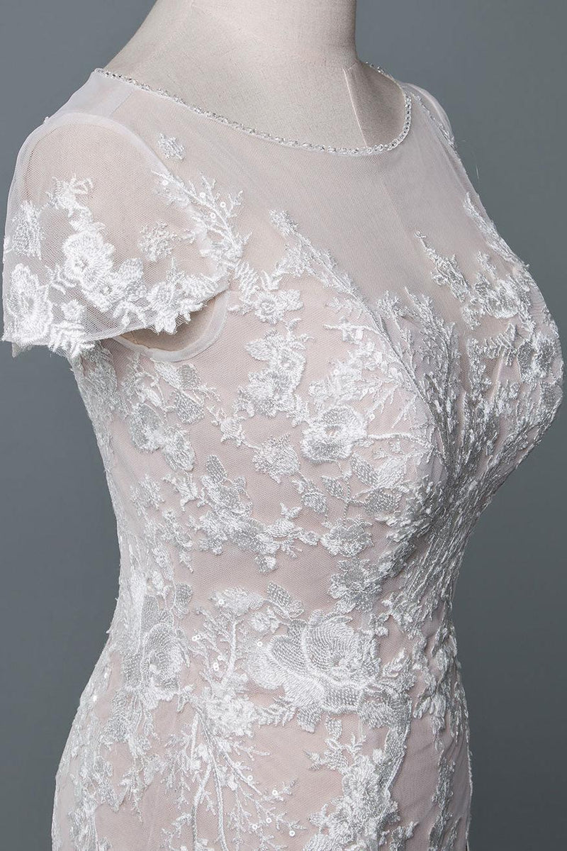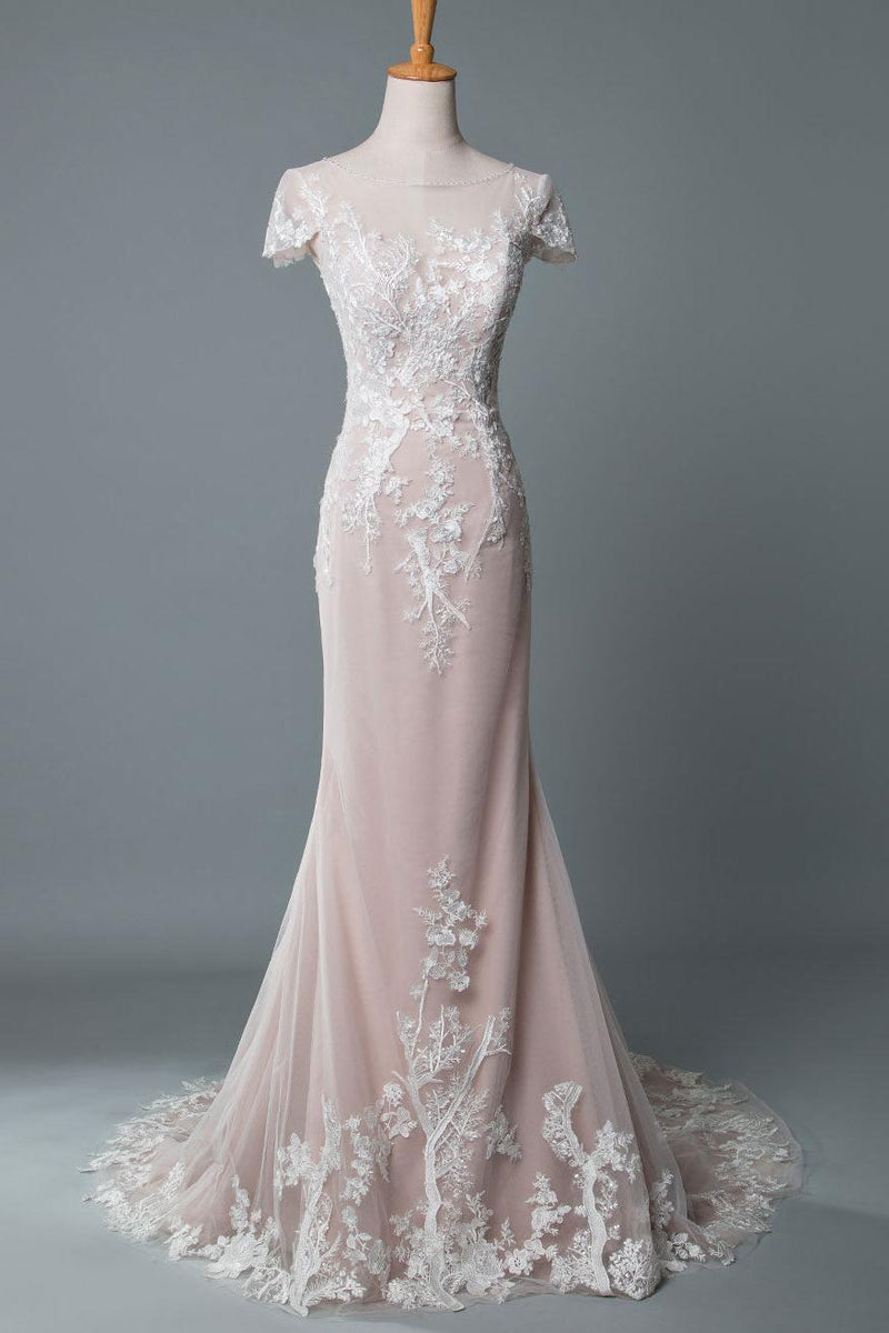 Casual Wedding Dress Mermaid Jewel Neck Short Sleeves Long Customized Lace Bridal Gowns With Train