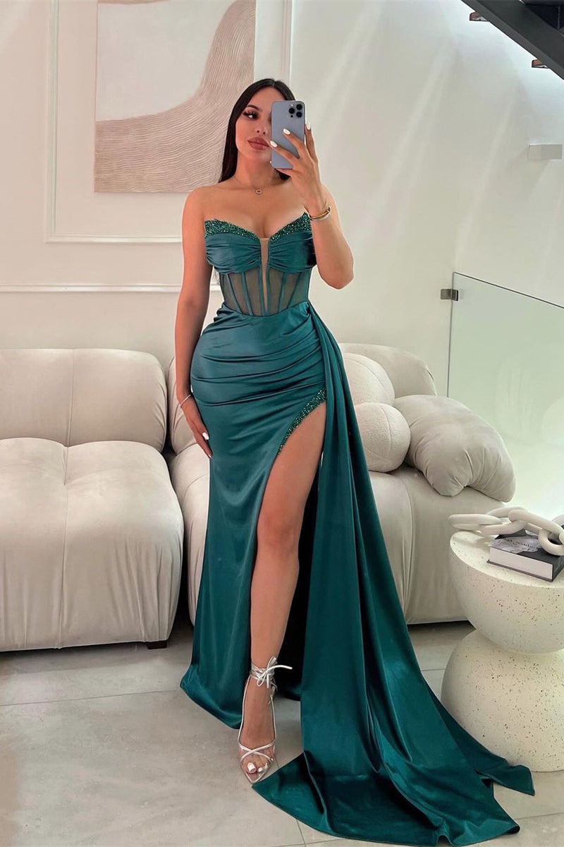 Fashion Long Mermaid Sleeveless Glitter Prom Dress With Slit