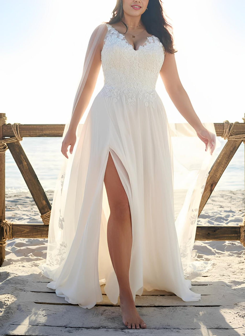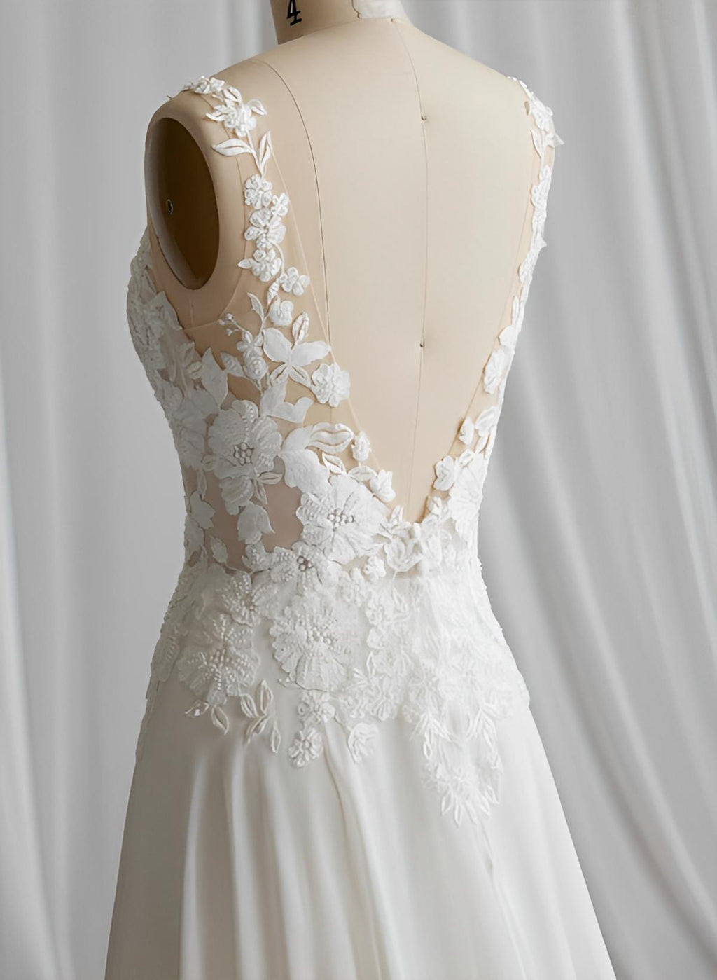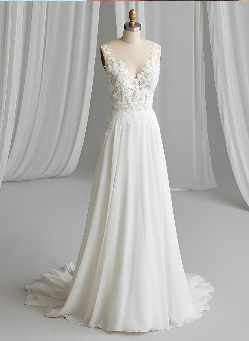Chic A-line V-Neck Sleeveless Sweep Train Chiffon Lace Wedding Dresses