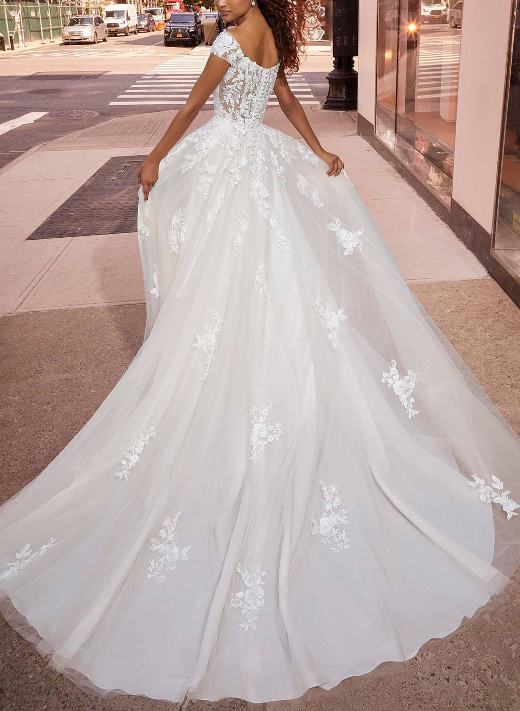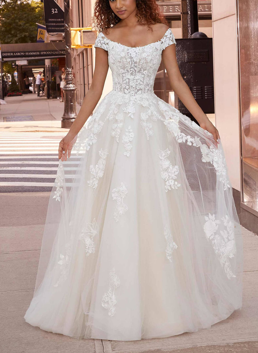 Off-the-Shoulder Lace Ball-Gown Wedding Dresses