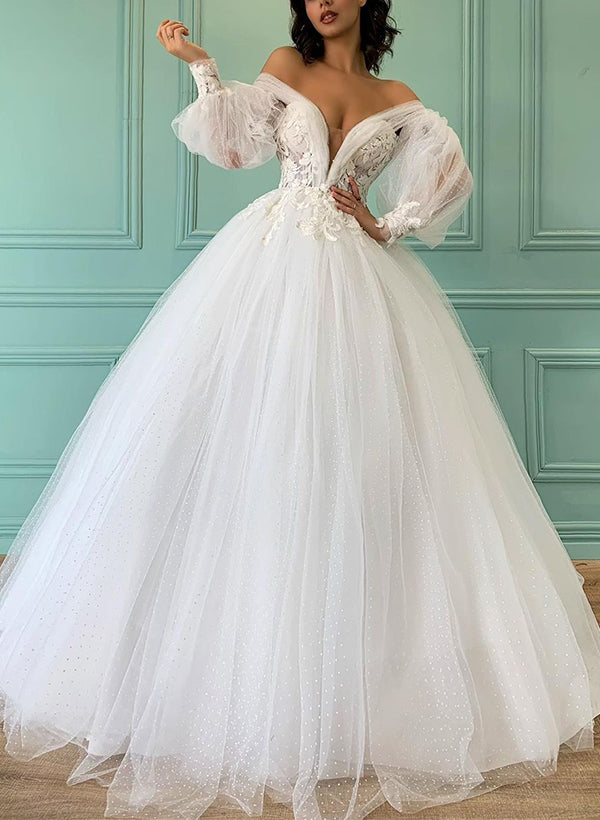 Off-The-Shoulder Tulle Wedding Dresses Appliques Lace