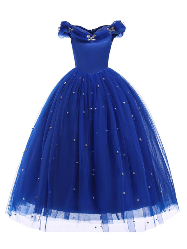 Little Girls Royal Blue flower girl dress Princess Beaded Kids Pageant Party Dress