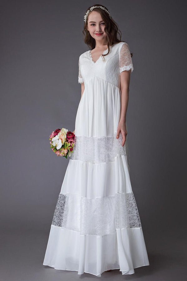 Boho Wedding Dresses Lace Chiffon Patchwork Ivory Short Sleeve Gypsy Maxi Beach Bridal Gowns Exclusive