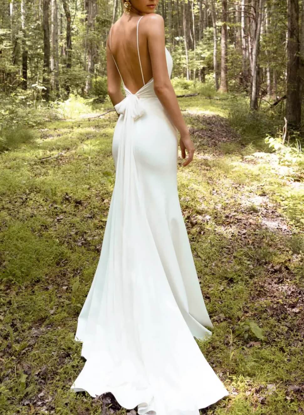 Backless Mermaid Fitted V-Neck Wedding Dresses In Elastic Satin