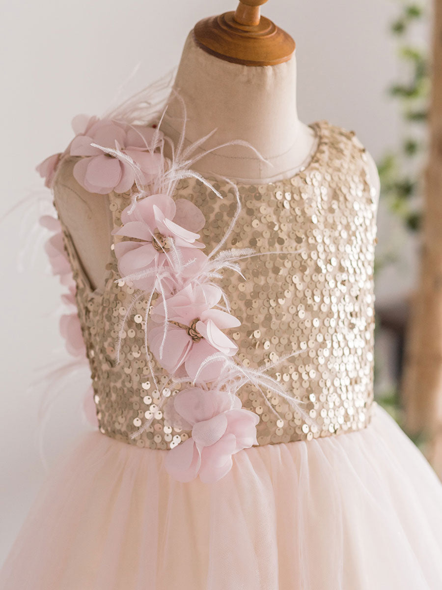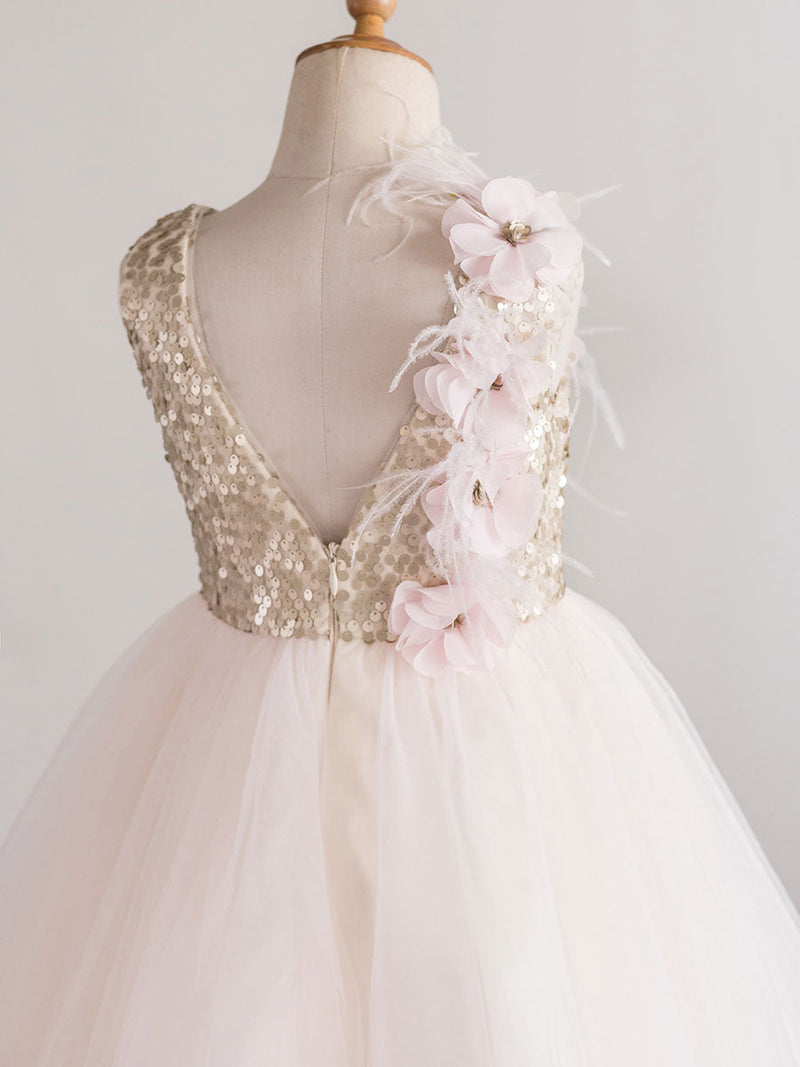 Silhouette Princess Neckline Jewel Hemline/Train Knee-Length Back Details Zipper Fabric Tulle, Sequined Embellishment Flowers Sleeve Length Sleeveless Fully Lined Yes Weight 0.5kg