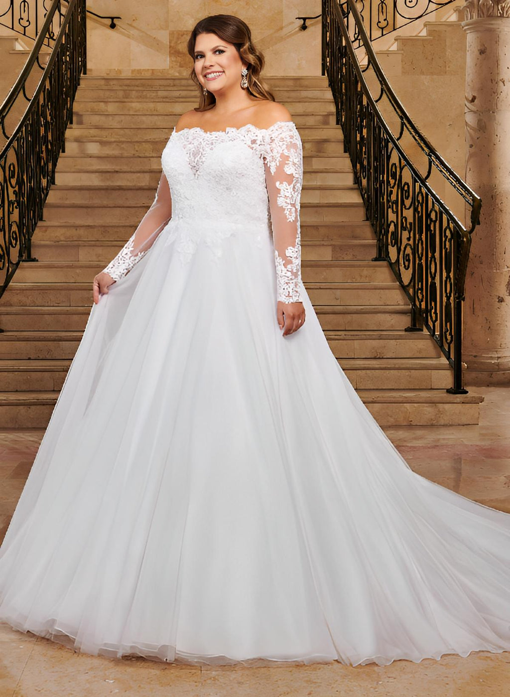 Off-the-Shoulder Lace Wedding Dresses Tulle Long Sleeves