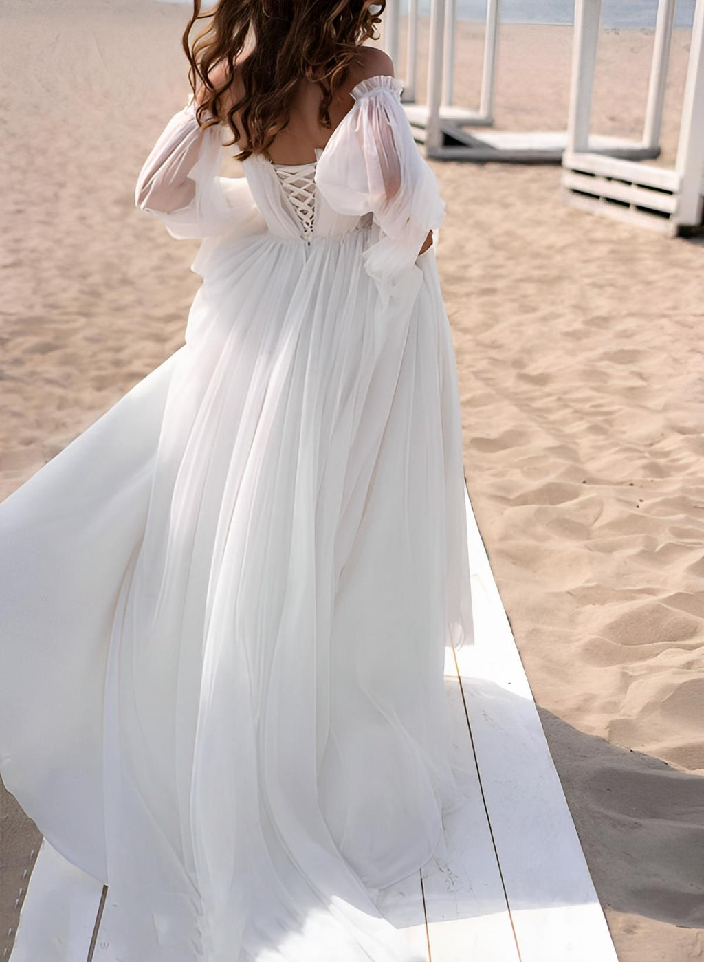 Summer Beach Boho Garden Strapless Long Sleeves Sweep Train Tulle Wedding Dresses Split Front