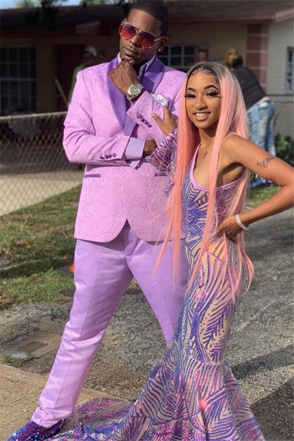 Gorgeous Pink Jacquard Men Suits Bespoke Shawl Lapel Prom Suit