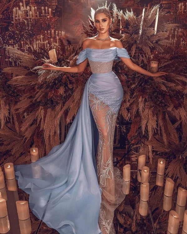 High-Neck Sequins Party Dresses Mermaid Long-Sleeve Evening Gowns
