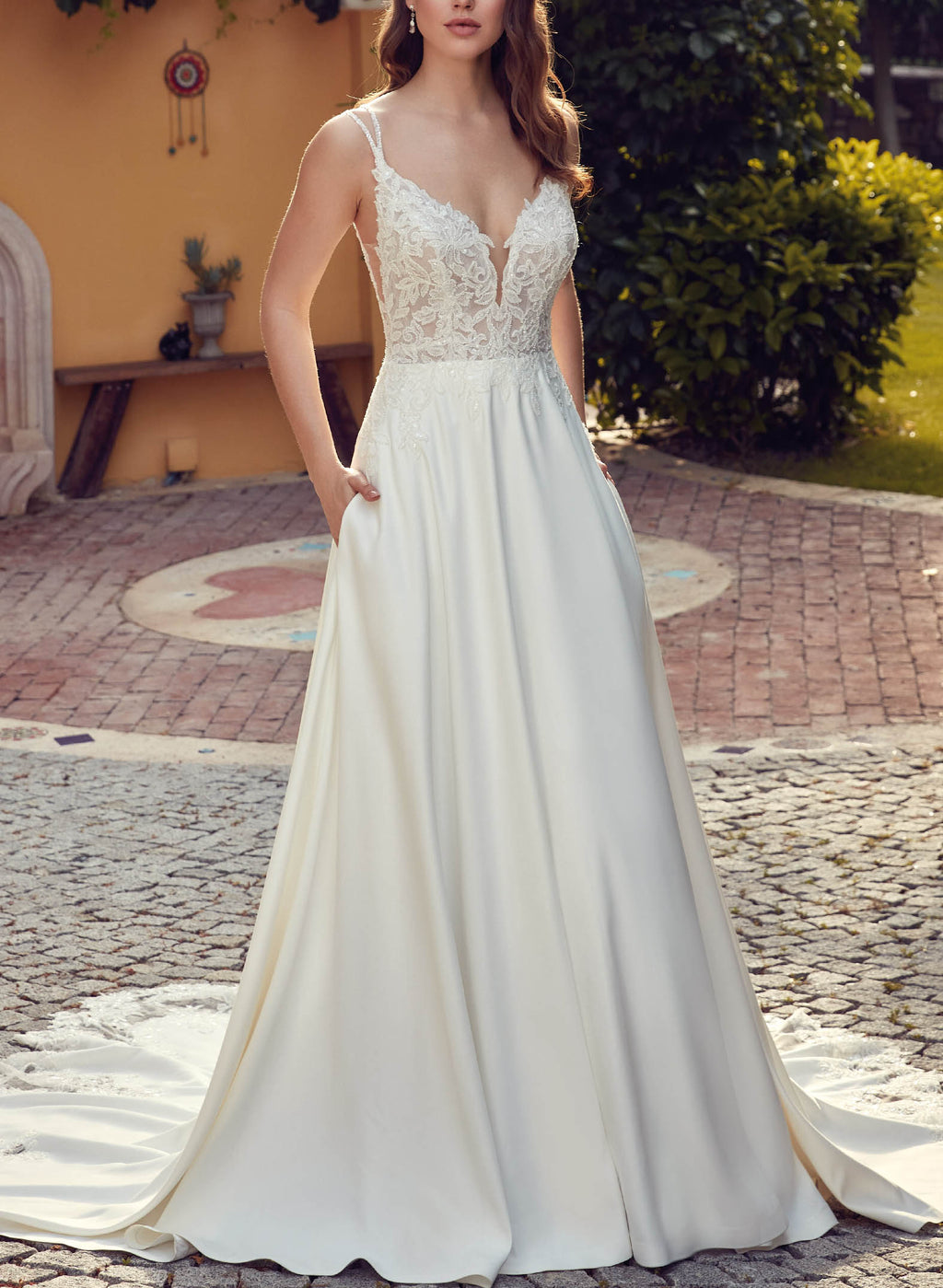Chic A-line Wedding Dresses Lace Open Back Pockets