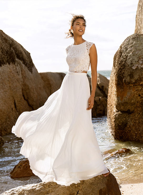 Chiffon Lace Chic A-line Floor-Length Ivory Bridal Dress Two-piece Wedding Dresses