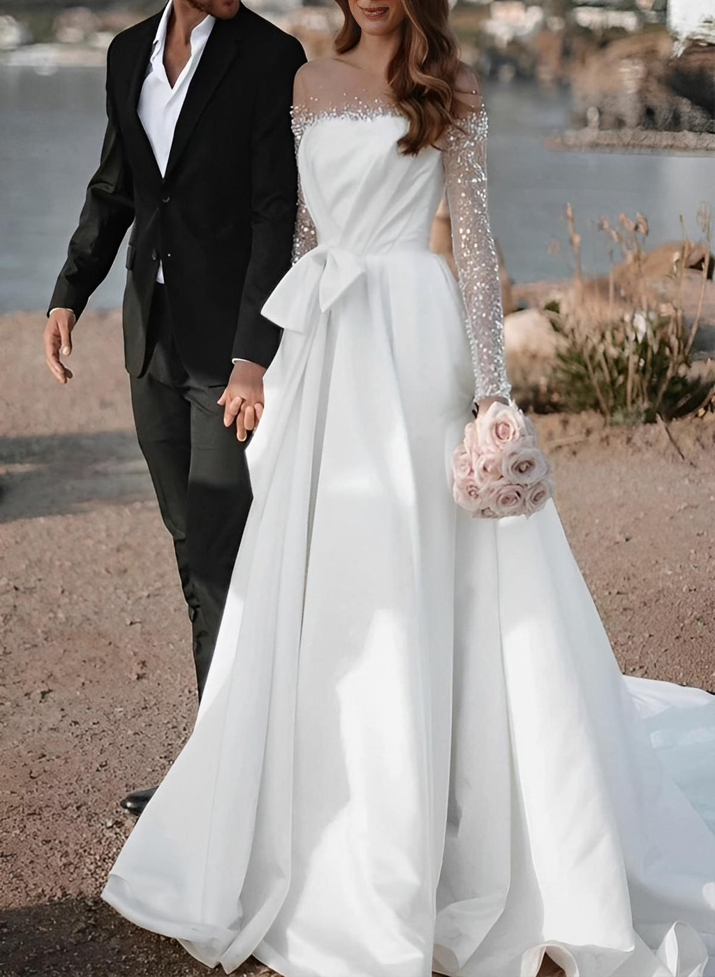 Illusion Neck Long Sleeves Sweep Train Wedding Dresses