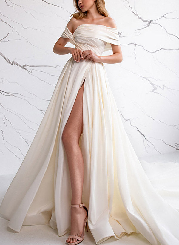 Off-The-Shoulder Sleeveless Satin Wedding Dresses Split Front