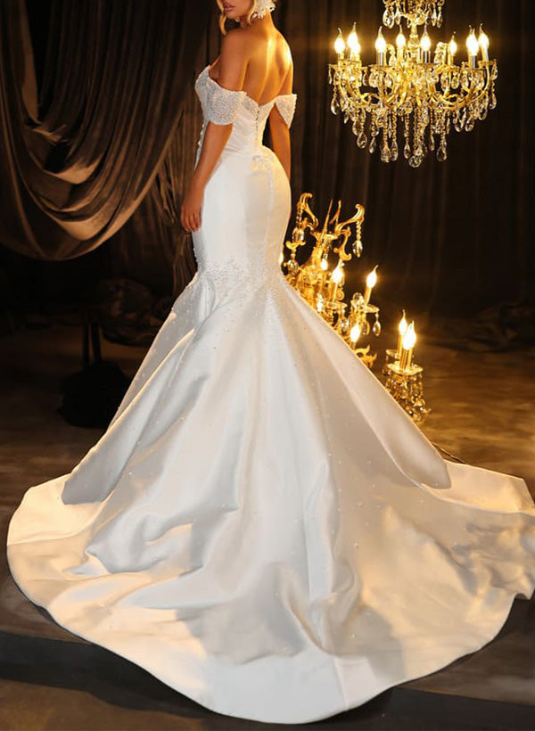 Sleeveless Satin Wedding Dresses Beaded