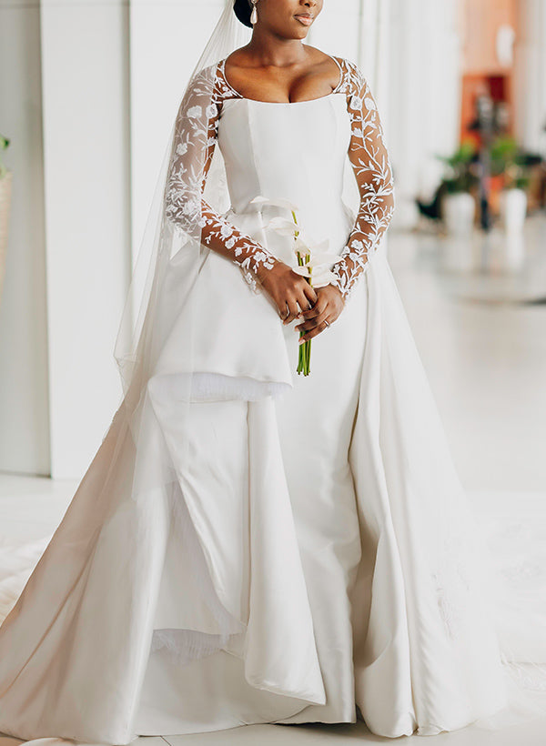 Trumpet Mermaid Fitted Illusion Neck Satin Wedding Dresses Lace