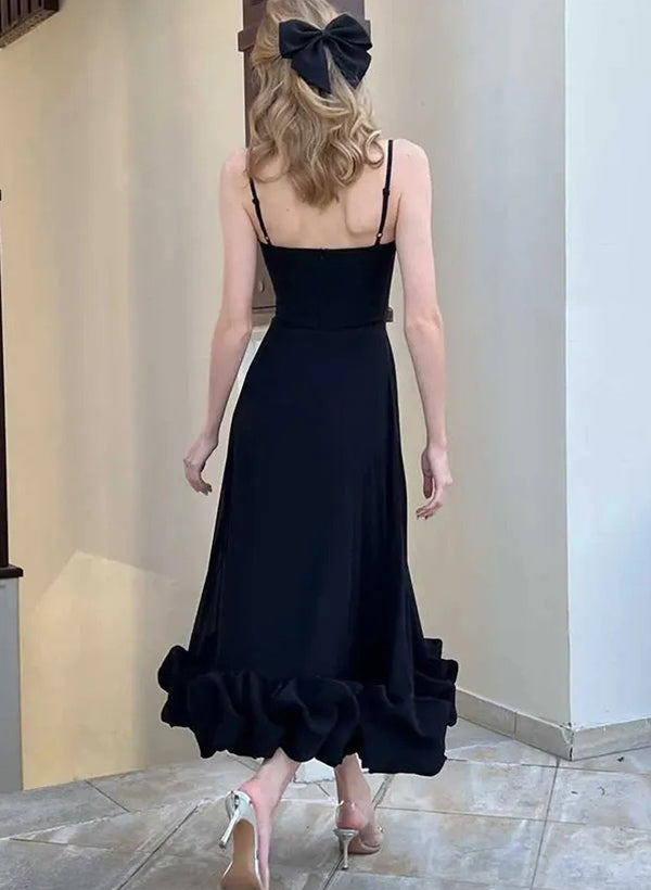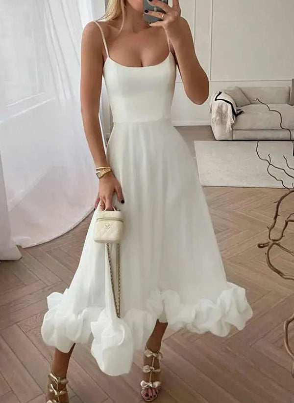 A-Line Square Neckline Sleeveless Tea-Length Elastic Satin Homecoming Dresses