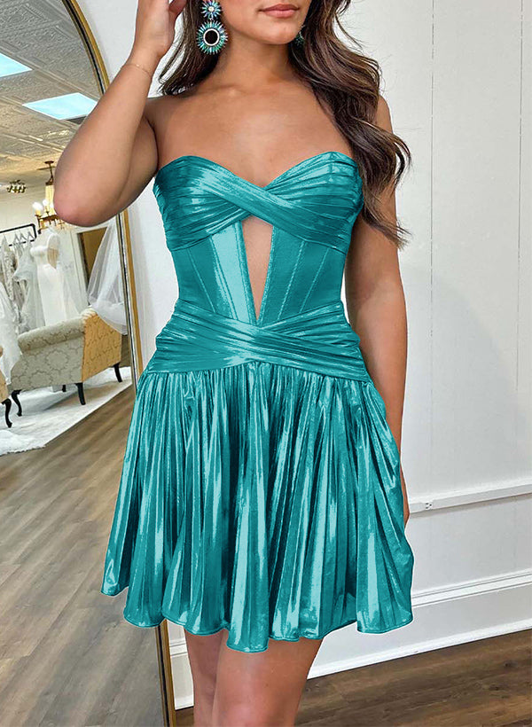 A-Line Sweetheart Silk Like Satin(Non-Stretch) Homecoming Dresses