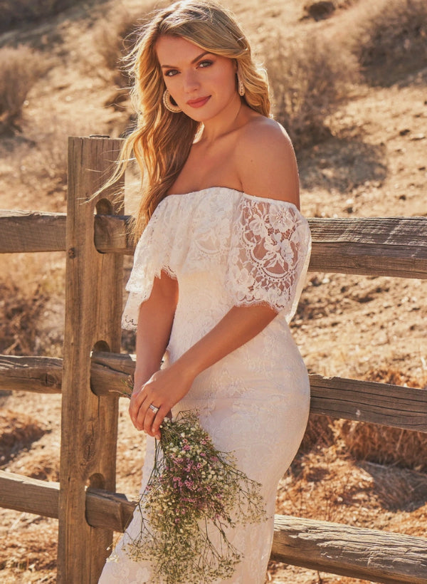 Boho Garden Lace Wedding Dress Western Style Off-The-Shoulder Design Sweep Train