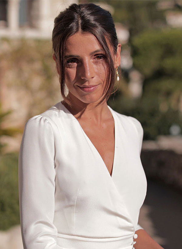 Chic A-line V-Neck Tea-Length Chiffon Short Wedding Dresses