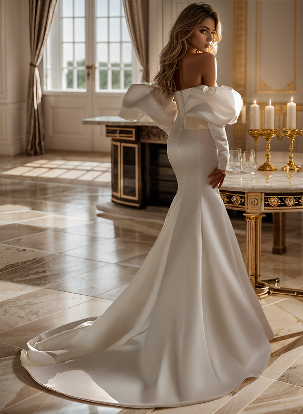 Elegant Long Sleeves Court Train Satin Wedding Dresses