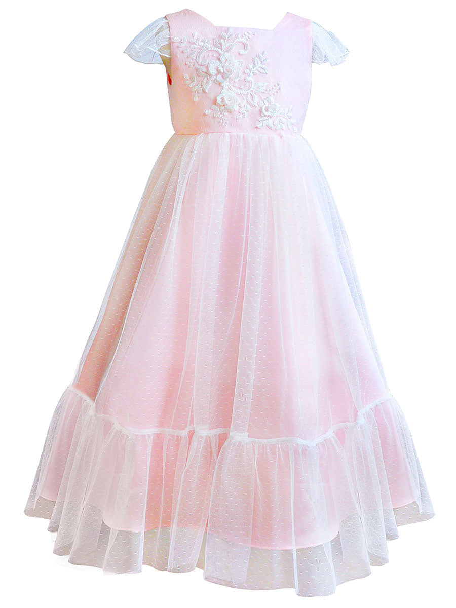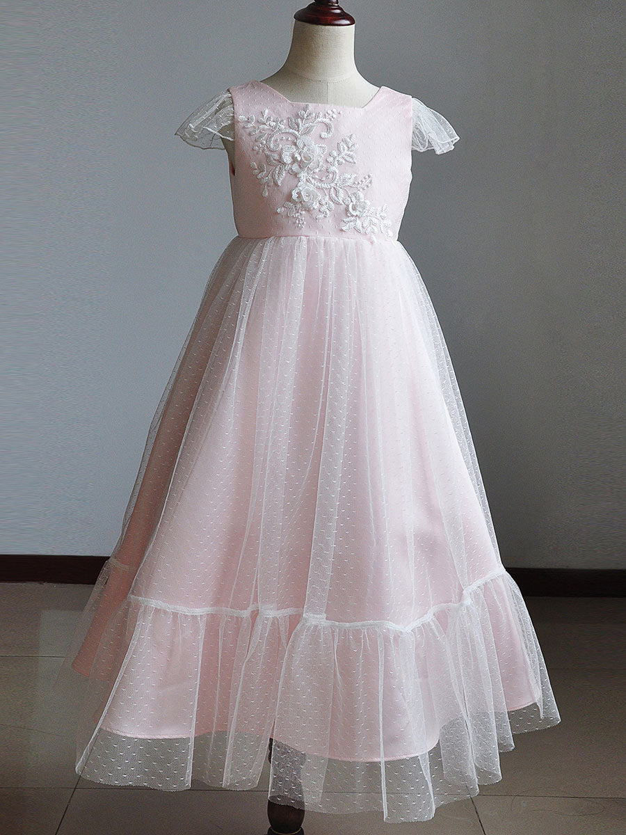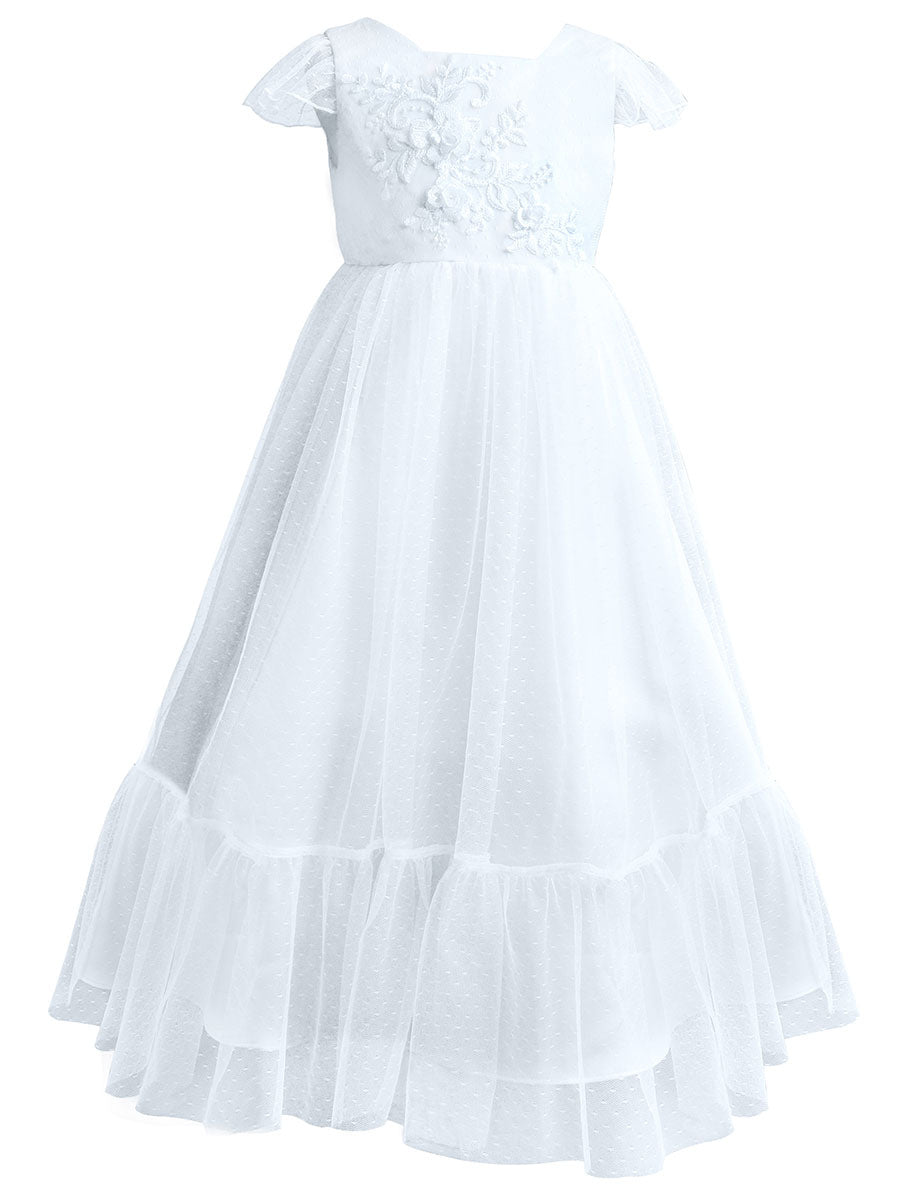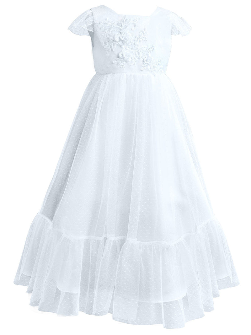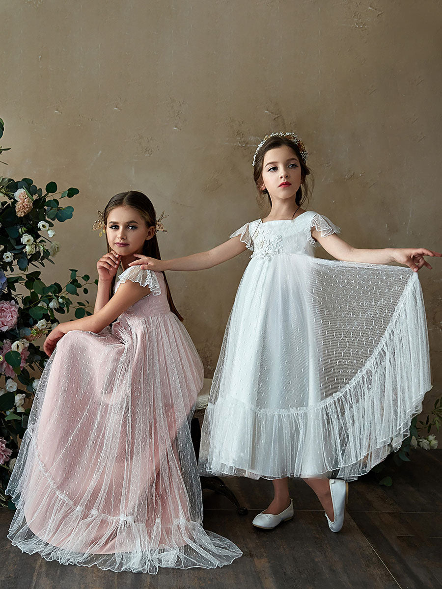 Flower Girl A-line Party Dress Flare Sleeve White Kid Dress