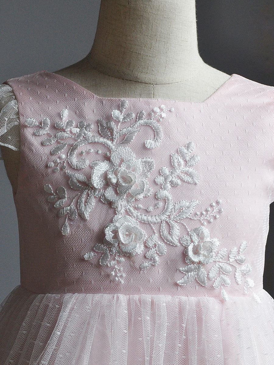 Silhouette A-Line Neckline Square Hemline/Train Tea-Length Back Details Zipper Fabric Tulle Embellishment Lace Sleeve Length Short Sleeve Fully Lined Yes Weight 0.3kg