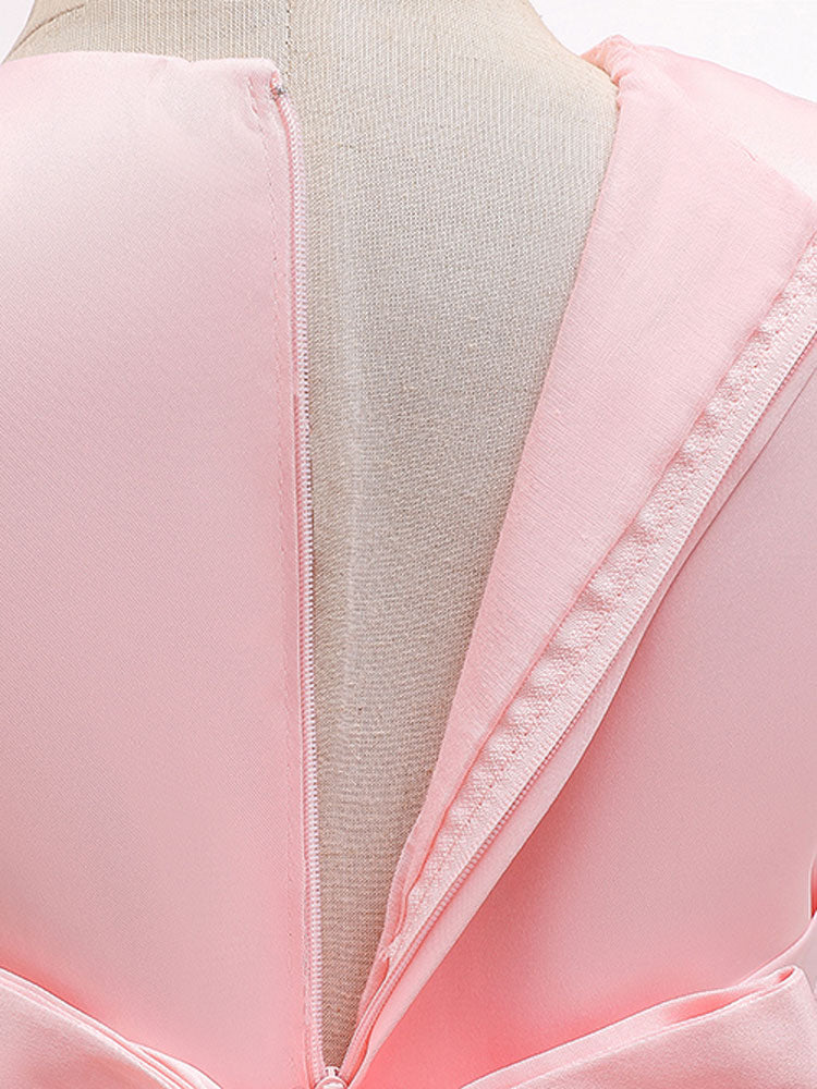Jewel Neck Polyester Sleeveless With Train Princess Bows Formal Kids Pageant flower girl dresses