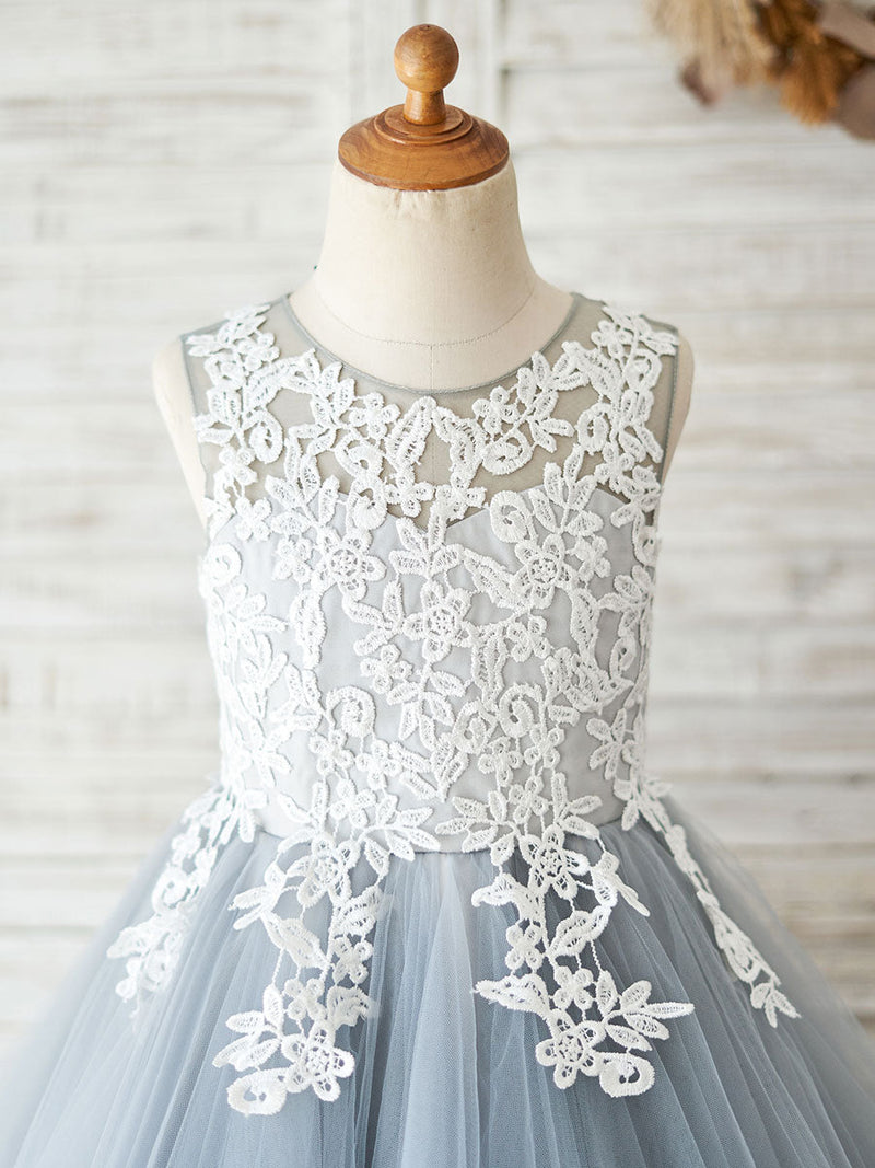 Jewel Neck Sleeveless Lace Bodice Formal Kids Pageant flower girl dresses