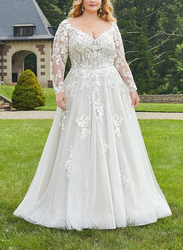 Stunning Ball-Gown Lace Long Sleeves Wedding Dresses Crystal Beading for Plus Size