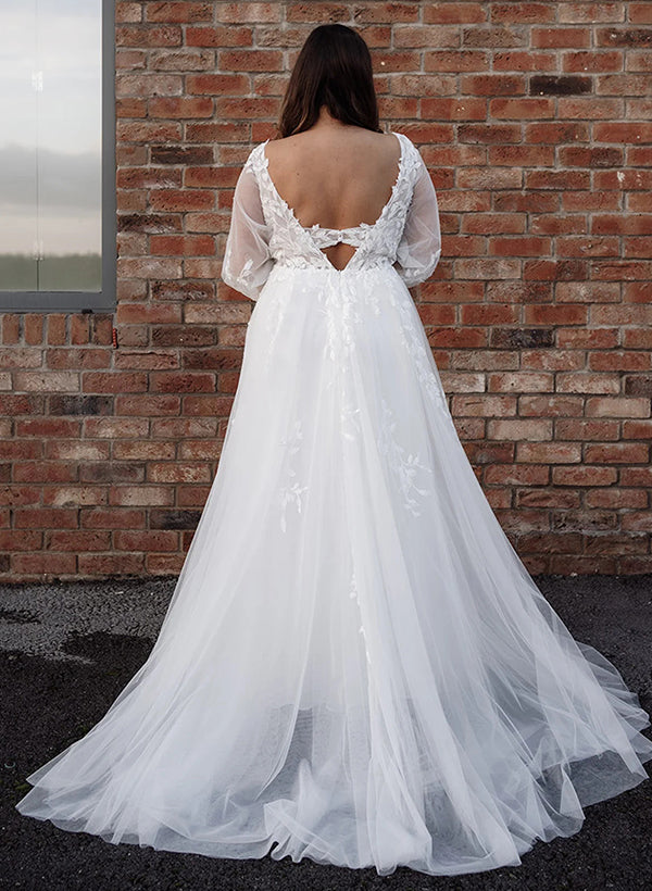 V-Neck Sweep Train Boho Garden Plus Size Chic A-line Long Sleeves Lace Wedding Dresses