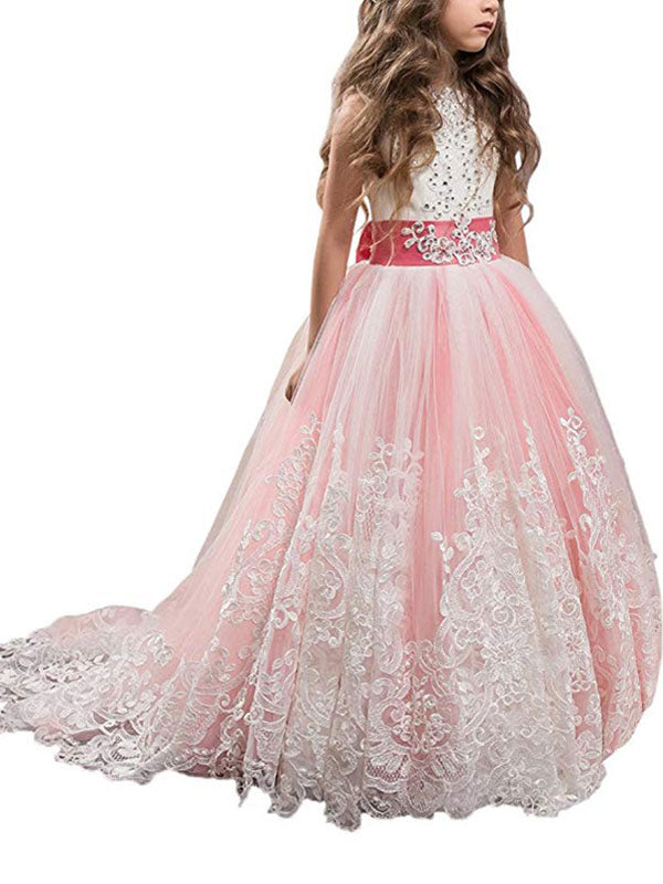 Jewel Neck Sleeveless Studded Formal flower girl dress