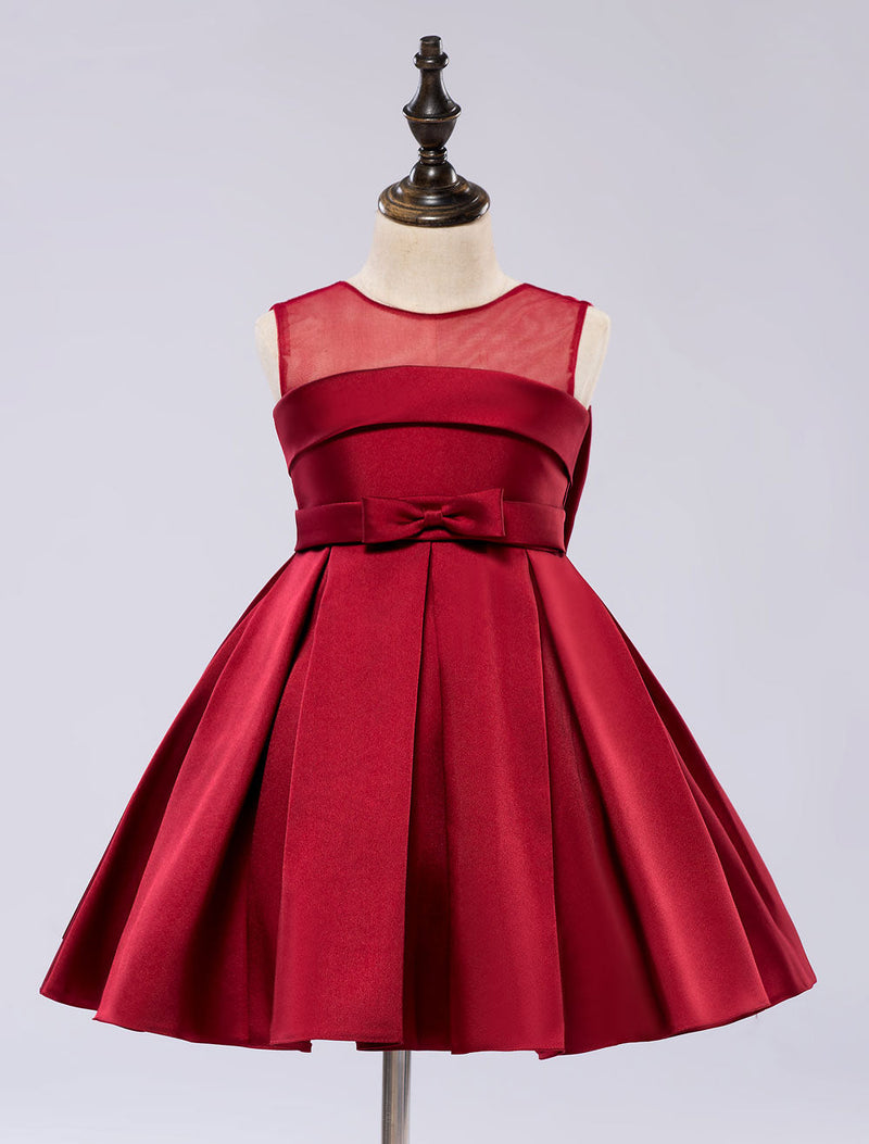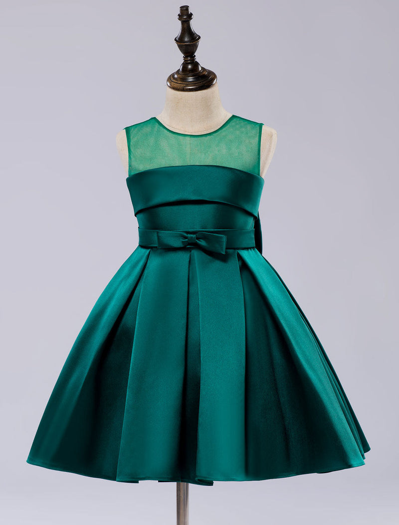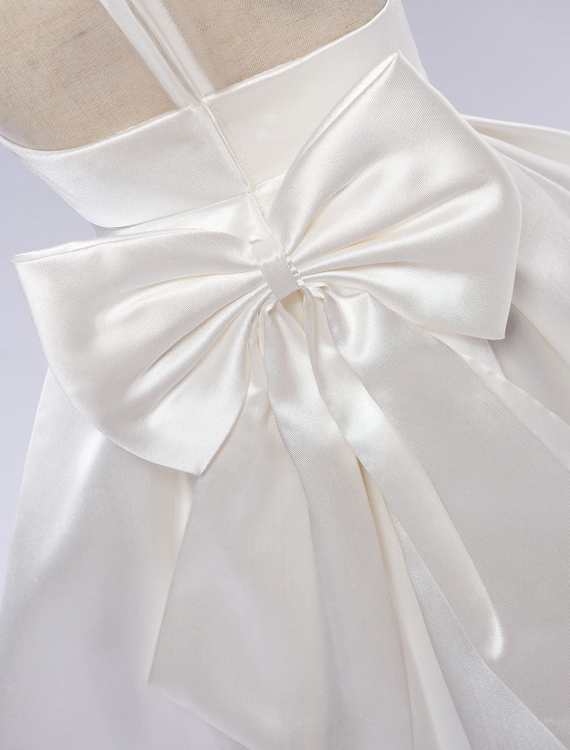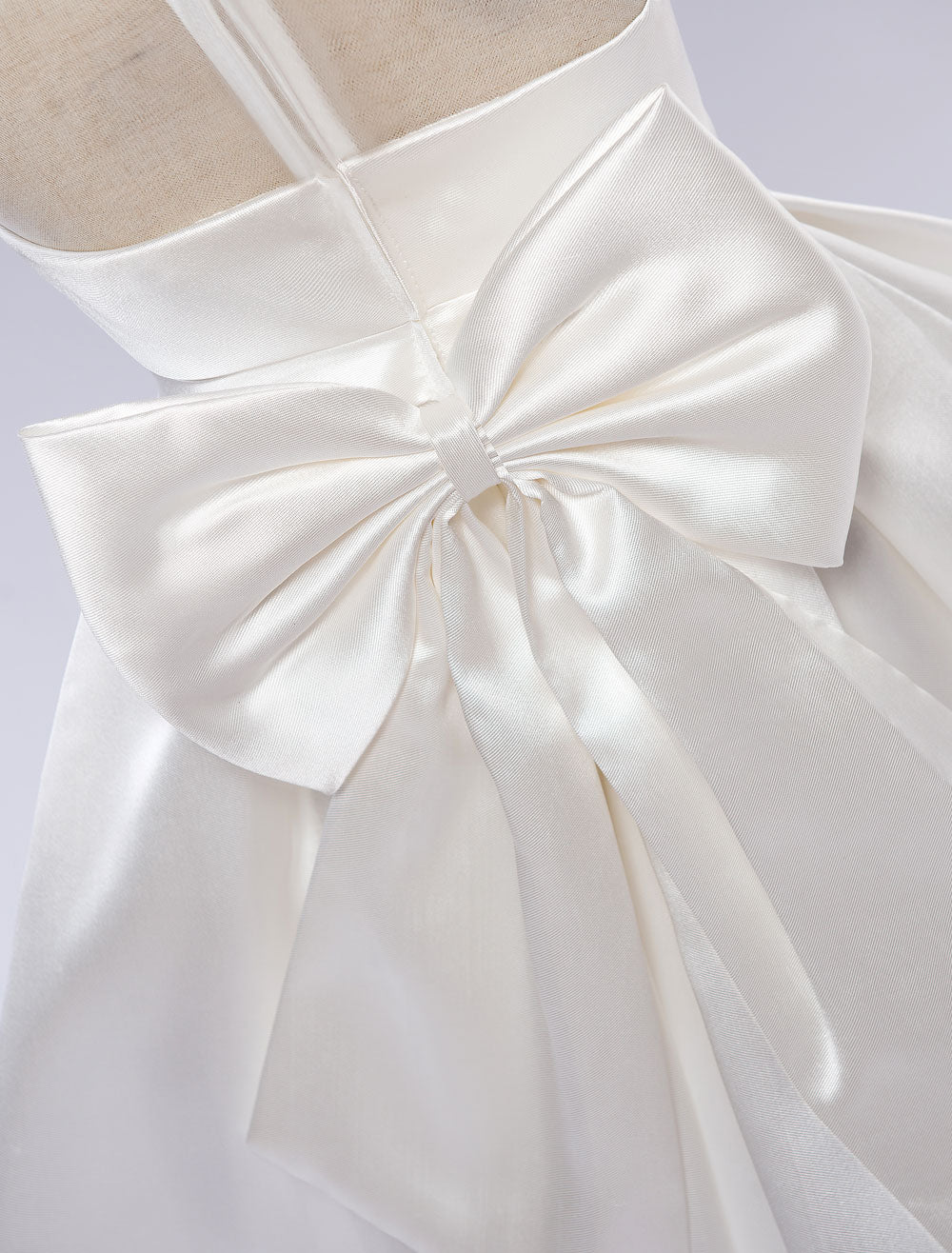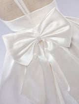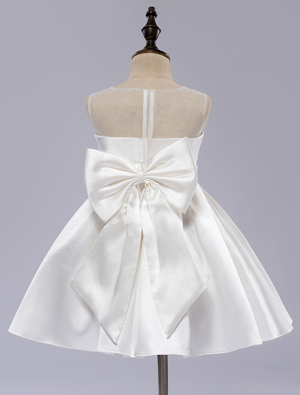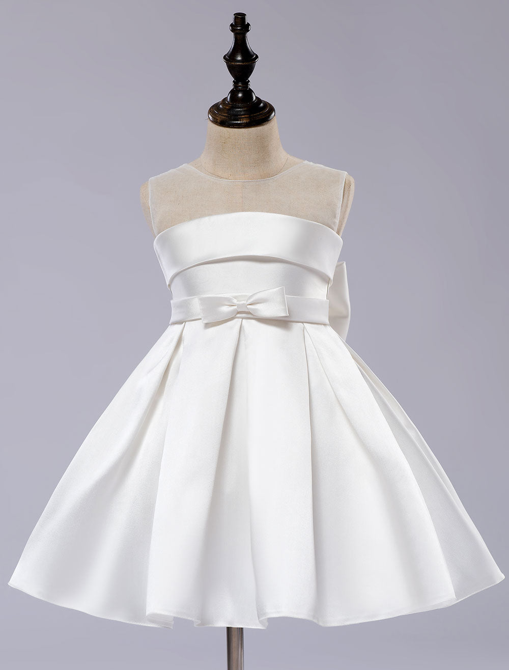 White flower girl dress Tutu Toddlers Short Satin Pageant Dinner Dress