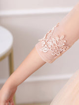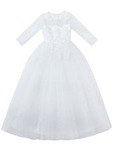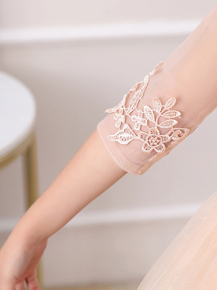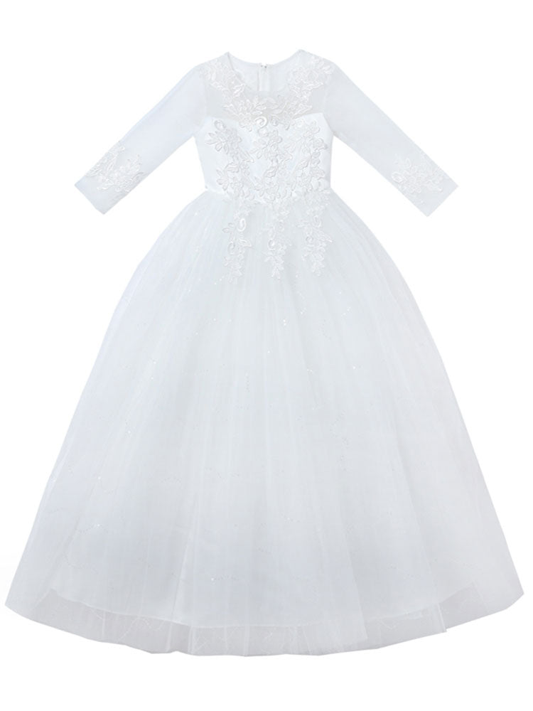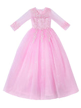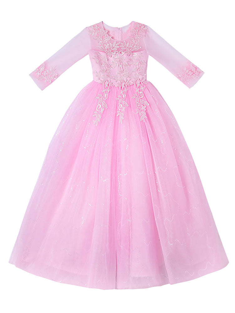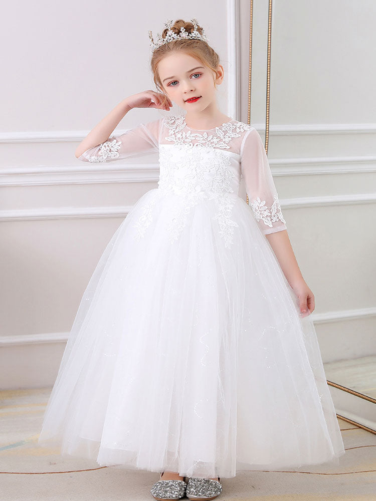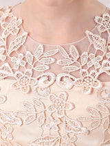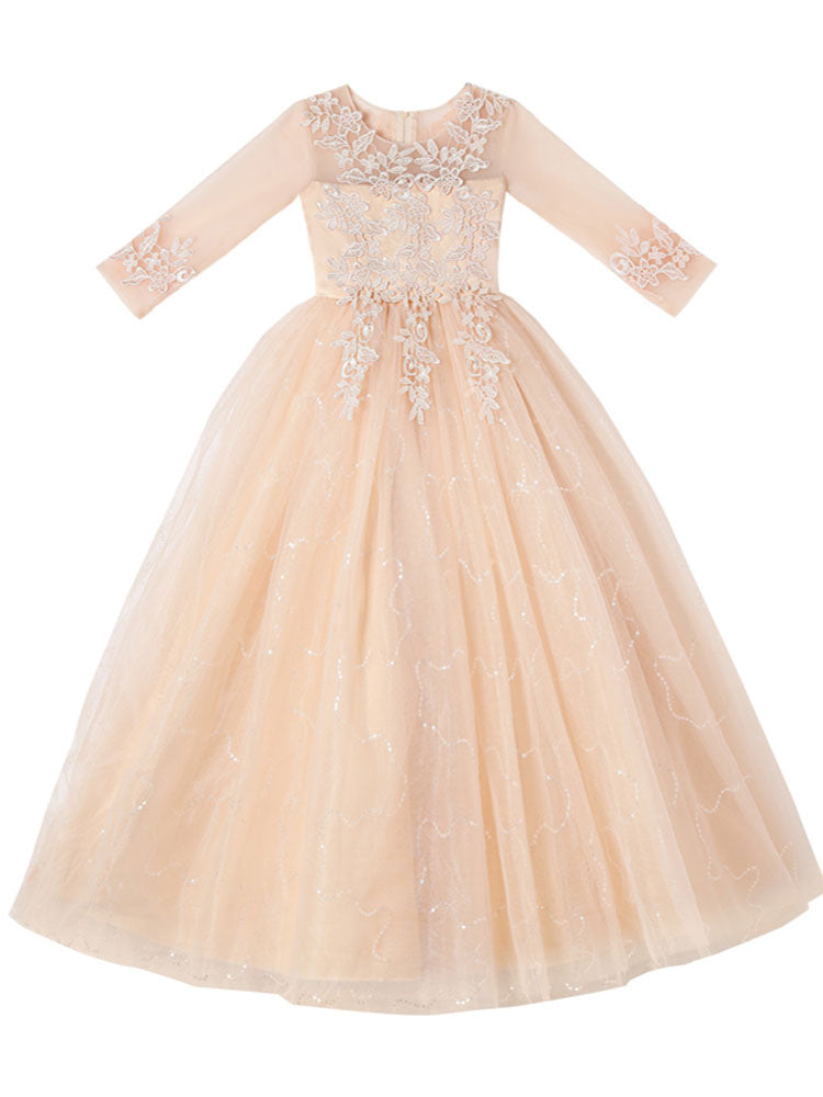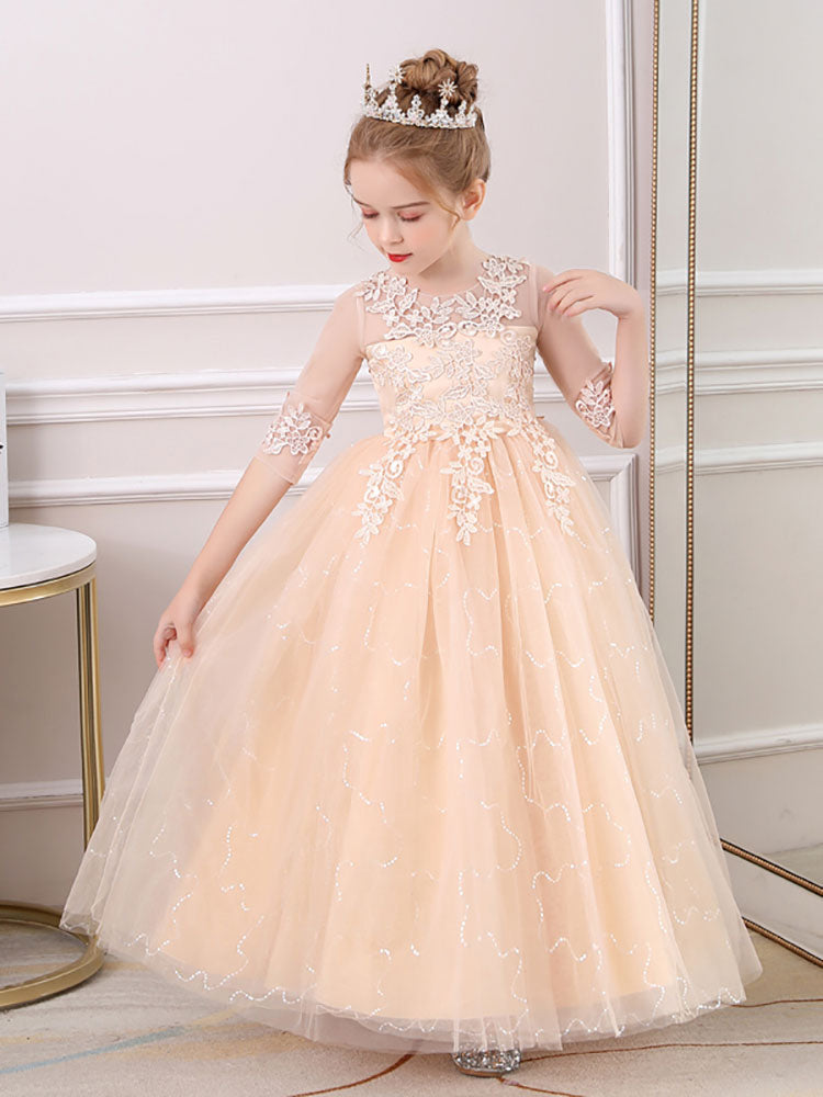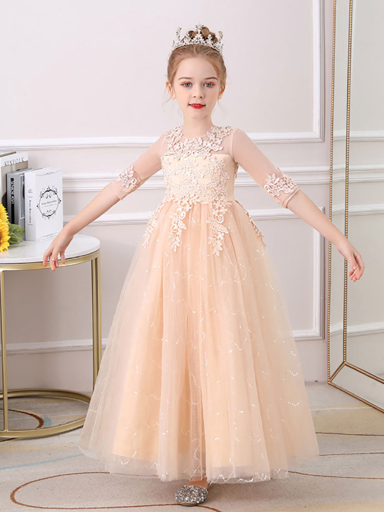 Champagne Jewel Neck Polyester Half Sleeves Ankle-Length A-Line Flowers Kids Party Dresses