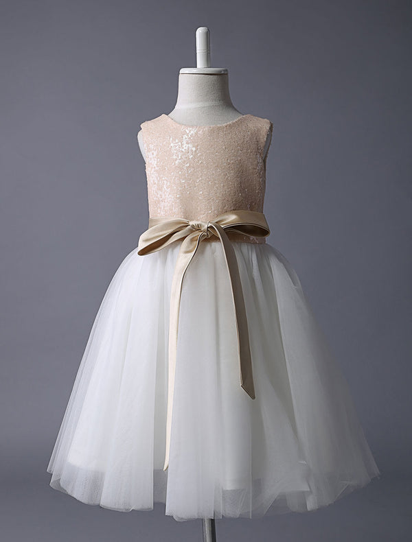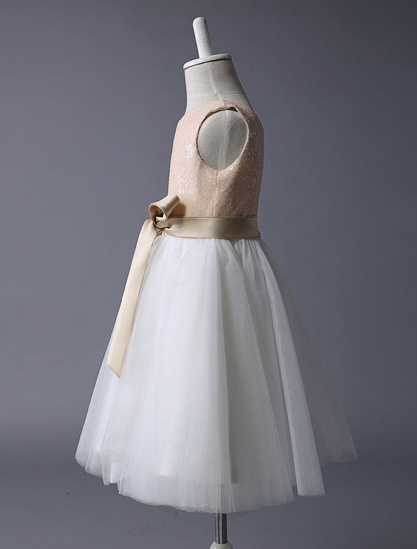 Bows Sash Sleeveless Jewel Neck Formal Kids Party Dresses