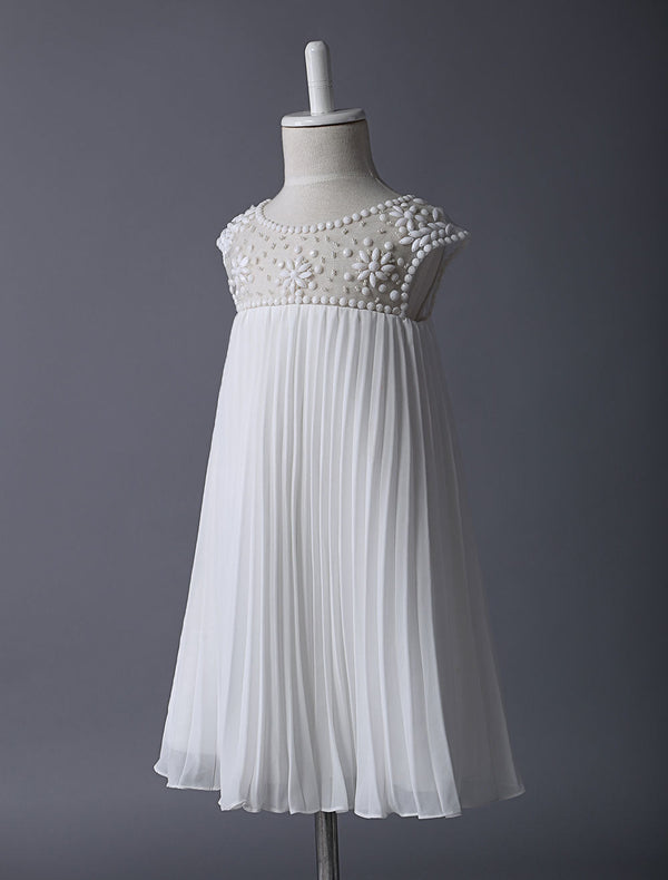 Ivory flower girl dress Boho Beaded Pleated Kids Party Dresses