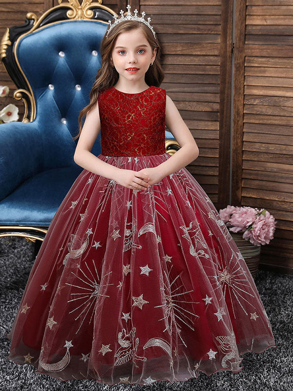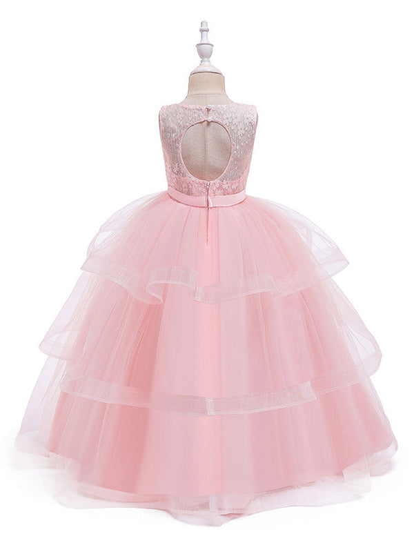 Jewel Neck Sleeveless Lace Bodice Kids Party Dresses