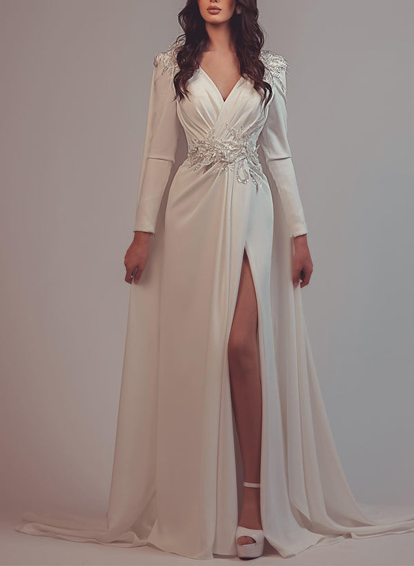 V-Neck Long Sleeves Chiffon Wedding Dresses Sequins