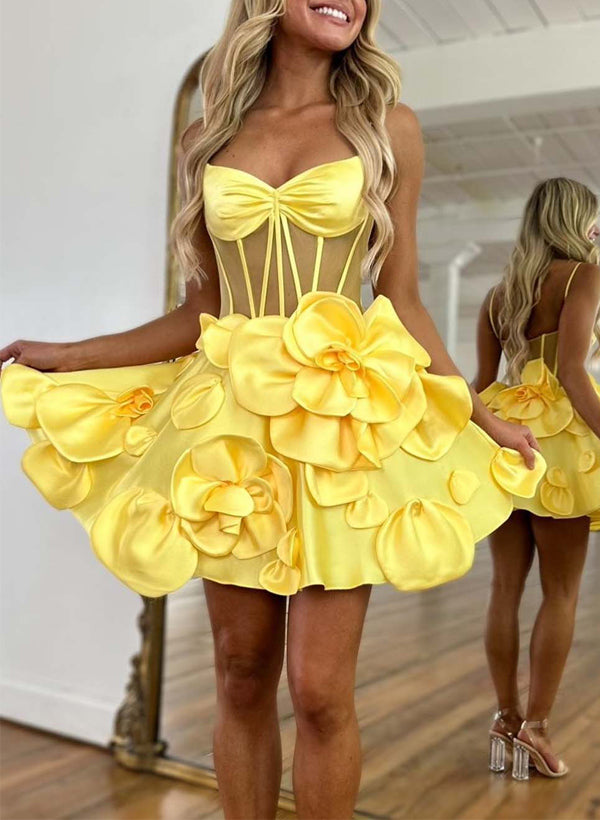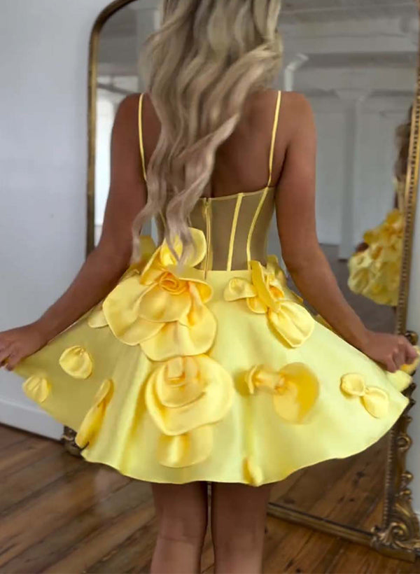 A-Line V-Neck Sleeveless Short/Mini Homecoming Dresses With Flower(s)